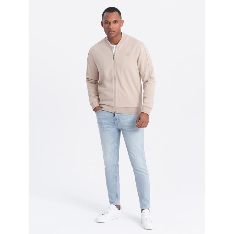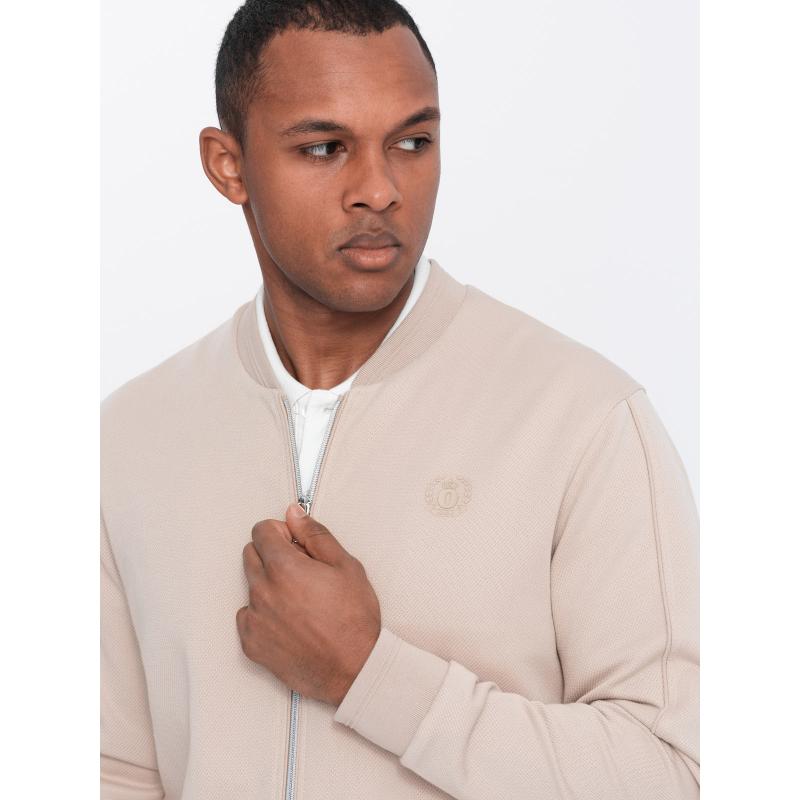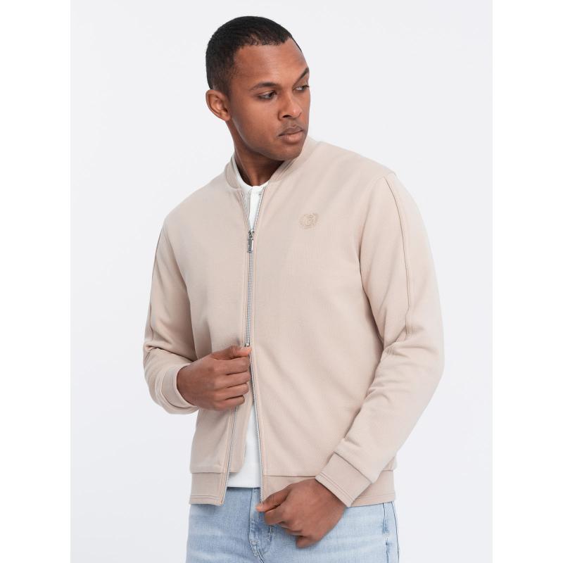 Pánská lehká bunda bomber s podšívkou s logem světle béžová