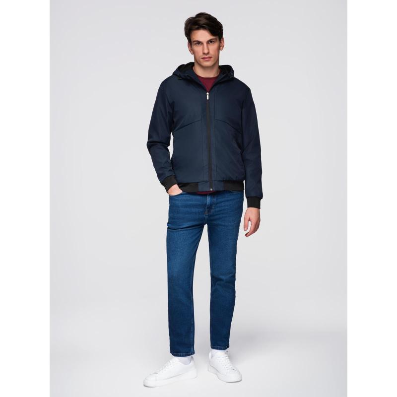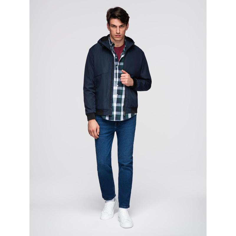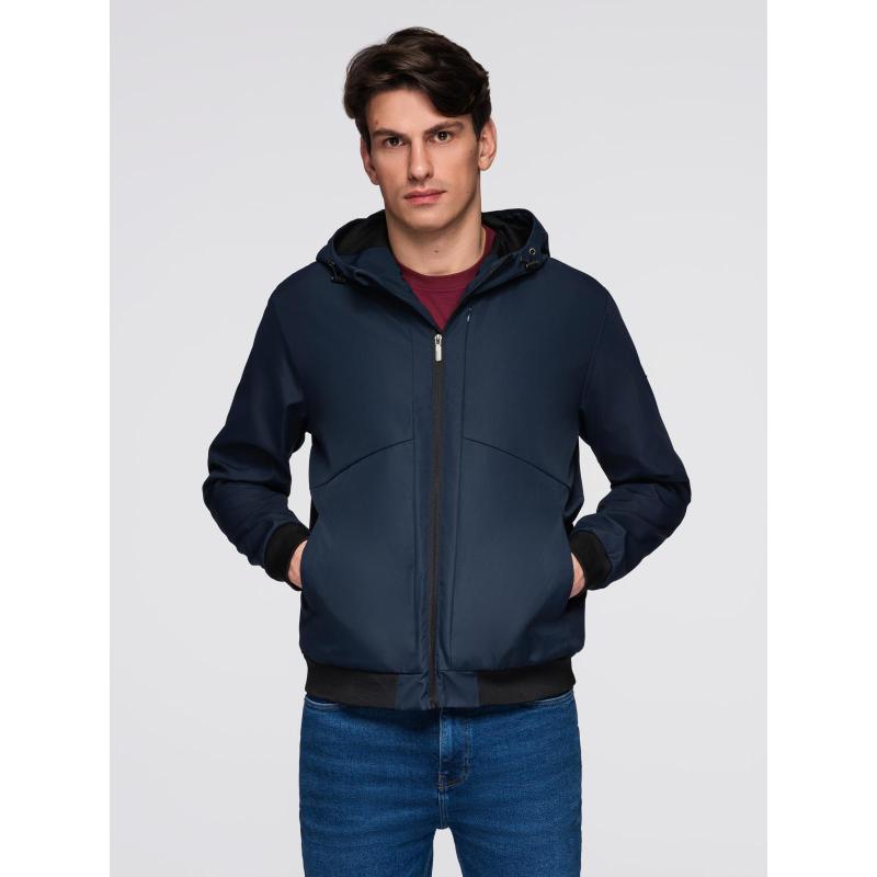 Pánská lehká bunda s kapucí a síťovanou podšívkou – tmavě modrá V1 C640