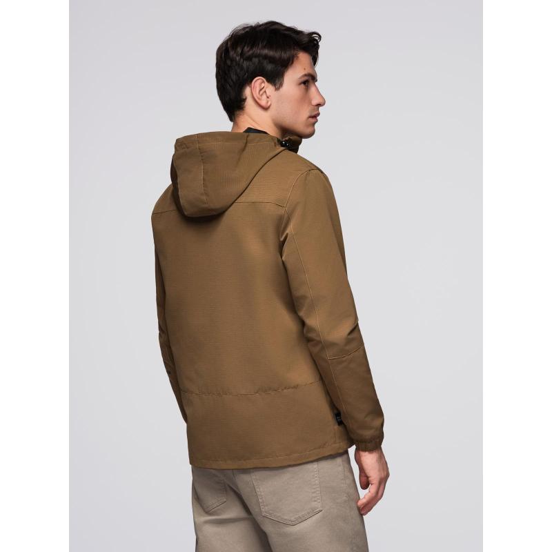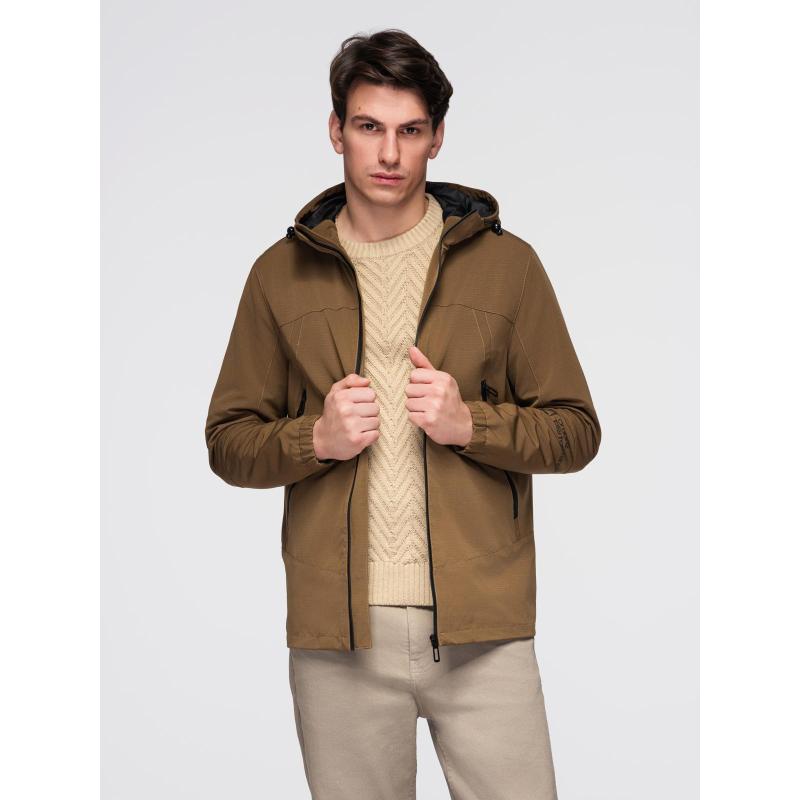 Pánská lehká bunda s voděodolnou vrstvou a kapucí – hnědá V2 C638