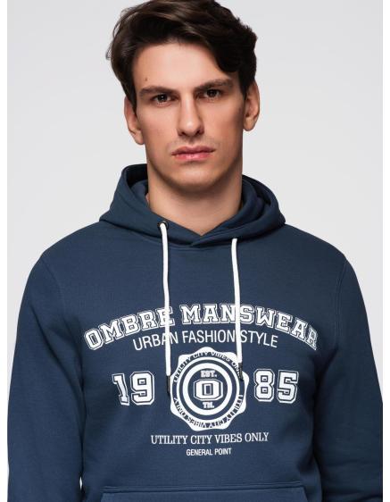 Pánská mikina BASIC s kapucí a klokaní kapsou – modrá V7 B1674
