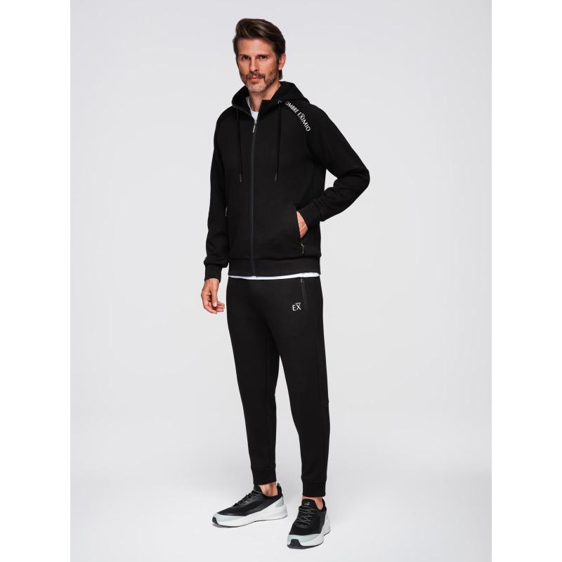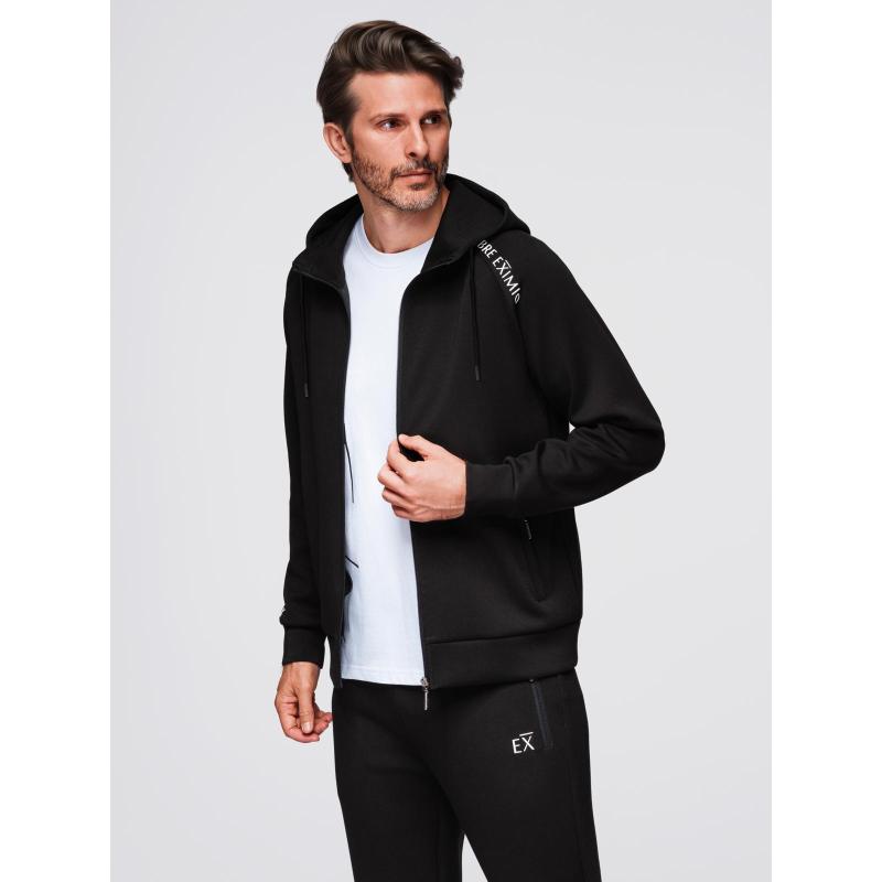 Pánská mikina bez knoflíků se stojáčkem a kapucí – černá V1 OM-SSZP-0216