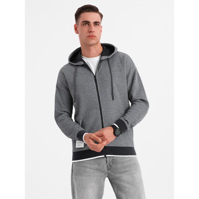 Pánská mikina s kapucí a jemnou strukturou – černá V1 OM-SSZP-0191