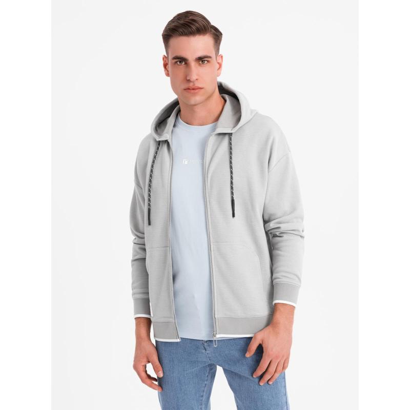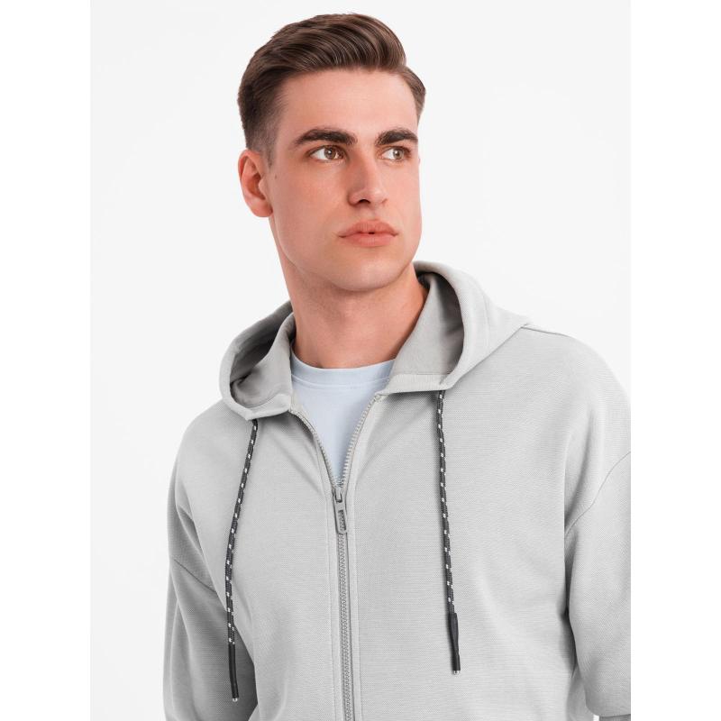 Pánská mikina s kapucí a jemnou strukturou – šedá V4 OM-SSZP-0191