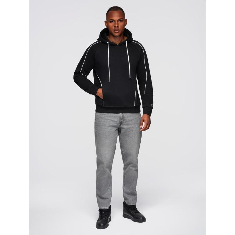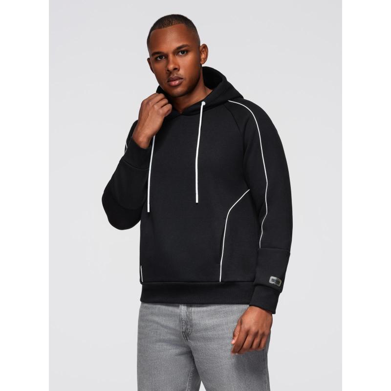 Pánská mikina s kontrastním prošíváním a kapucí – černá V1 OM-SSNZ-0250