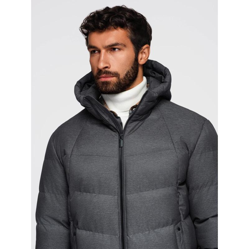 Pánská motorkářská bunda se strukturovaným střihem a stojáčkem – tmavě zelená V3 OM-JANP-0229