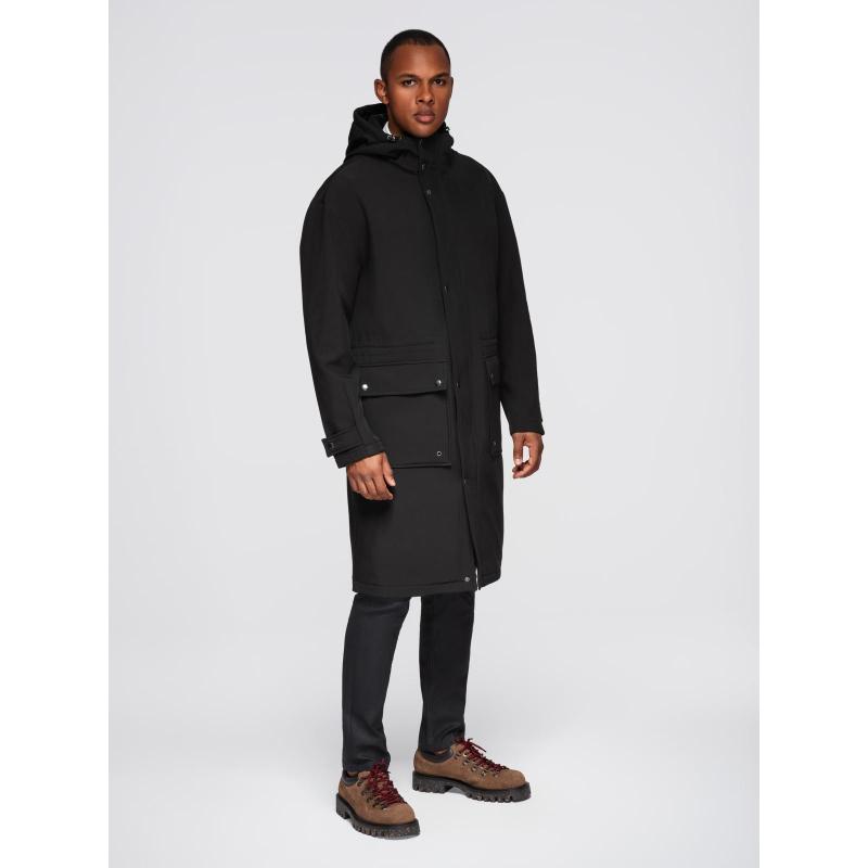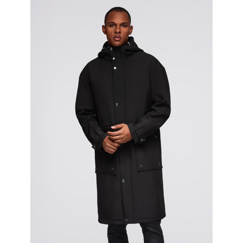 Pánská parka s fleecovou podšívkou a nastavitelným pasem – černá V2 OM-JAPJ-0314