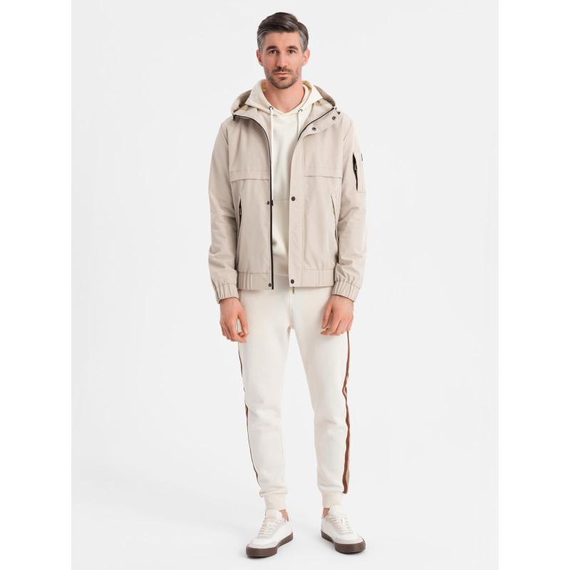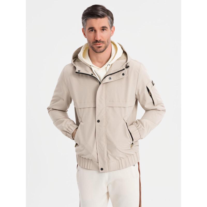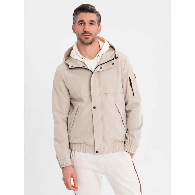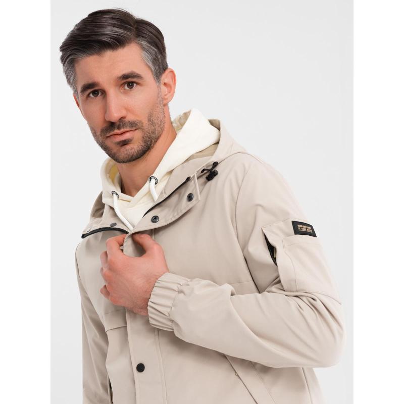 Pánská prošívaná bunda s košilovým střihem – khaki V3 OM-JALP-0215