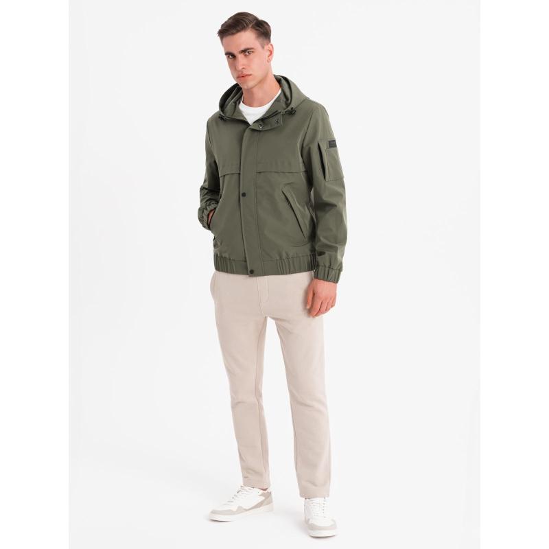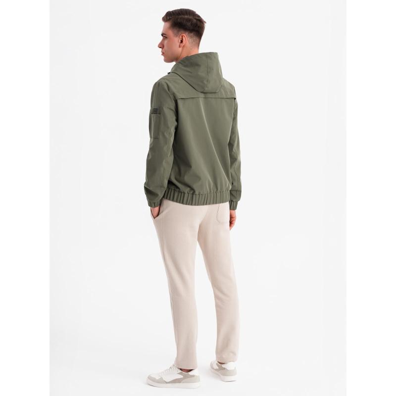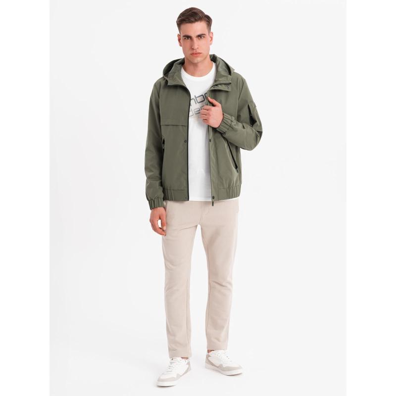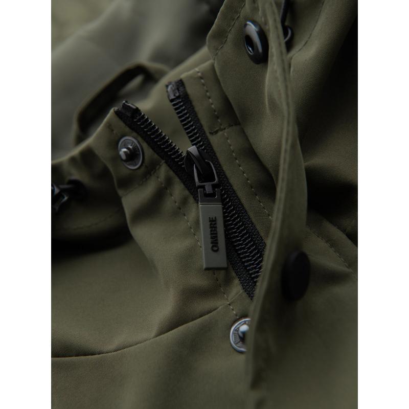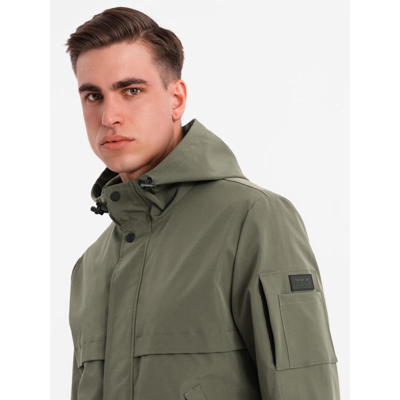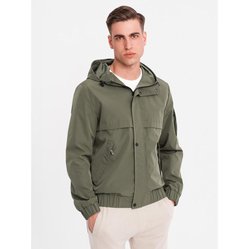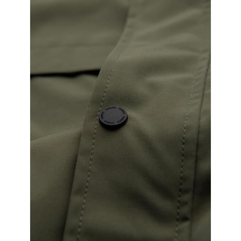 Pánská prošívaná bunda s košilovým střihem – olivová V2 OM-JALP-0215