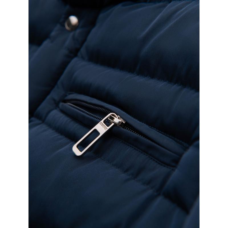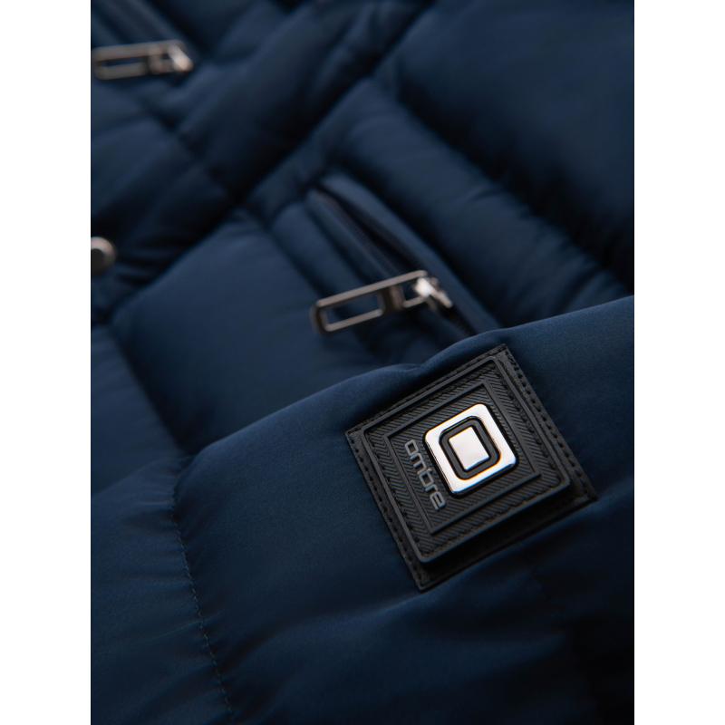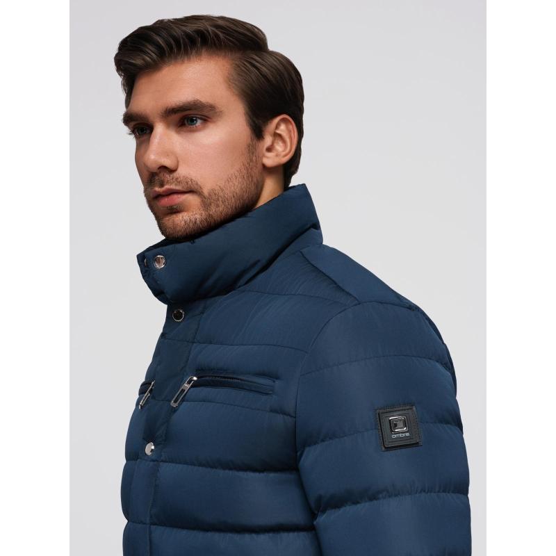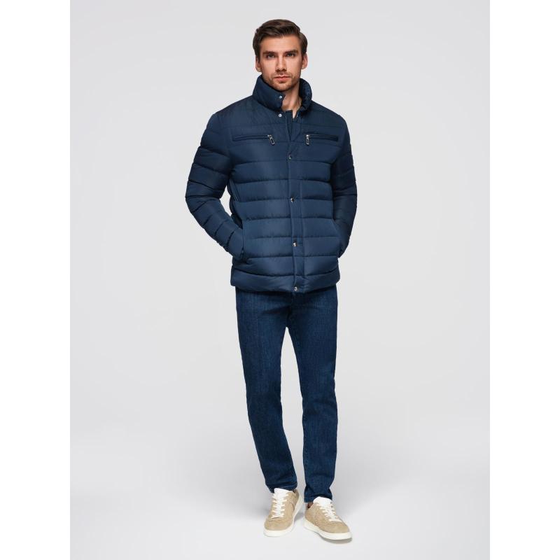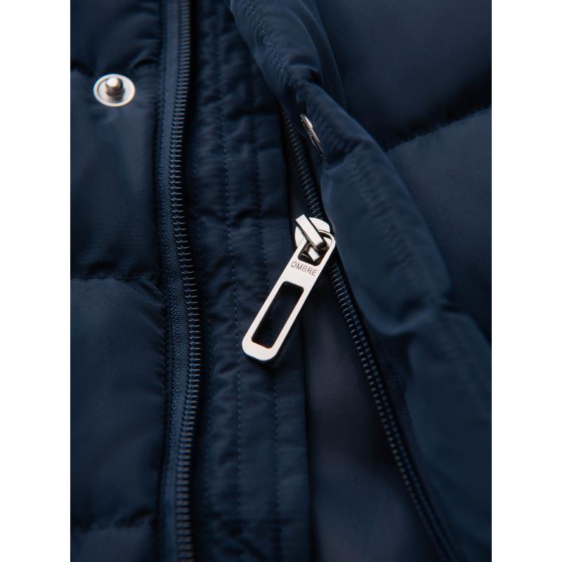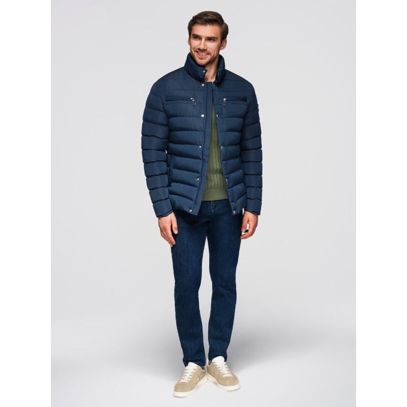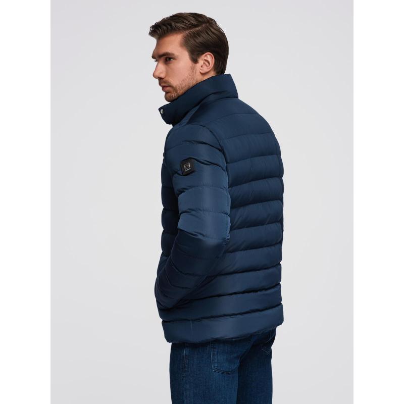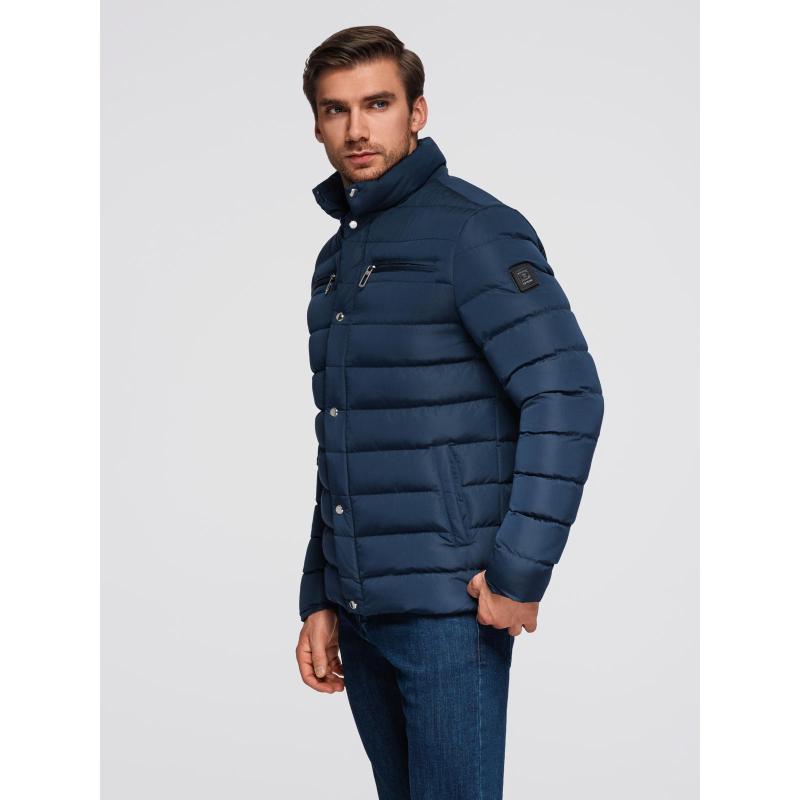 Pánská prošívaná bunda s stojáčkem a zipy na hrudi – tmavě modrá V2 OM-JALP-0260