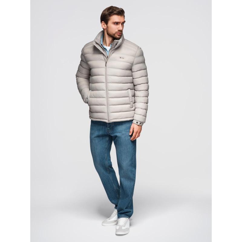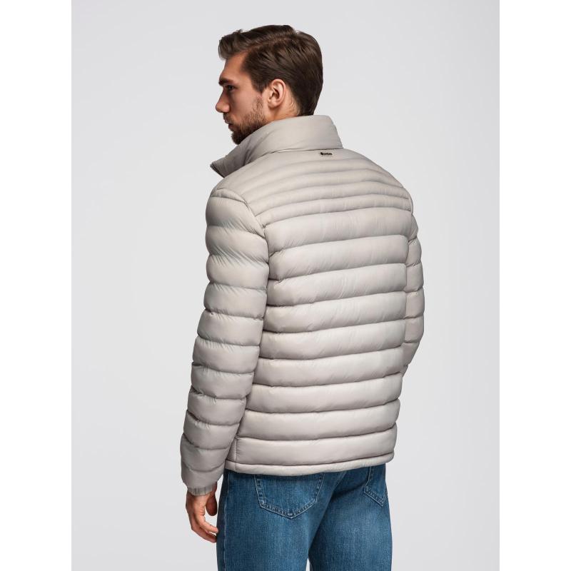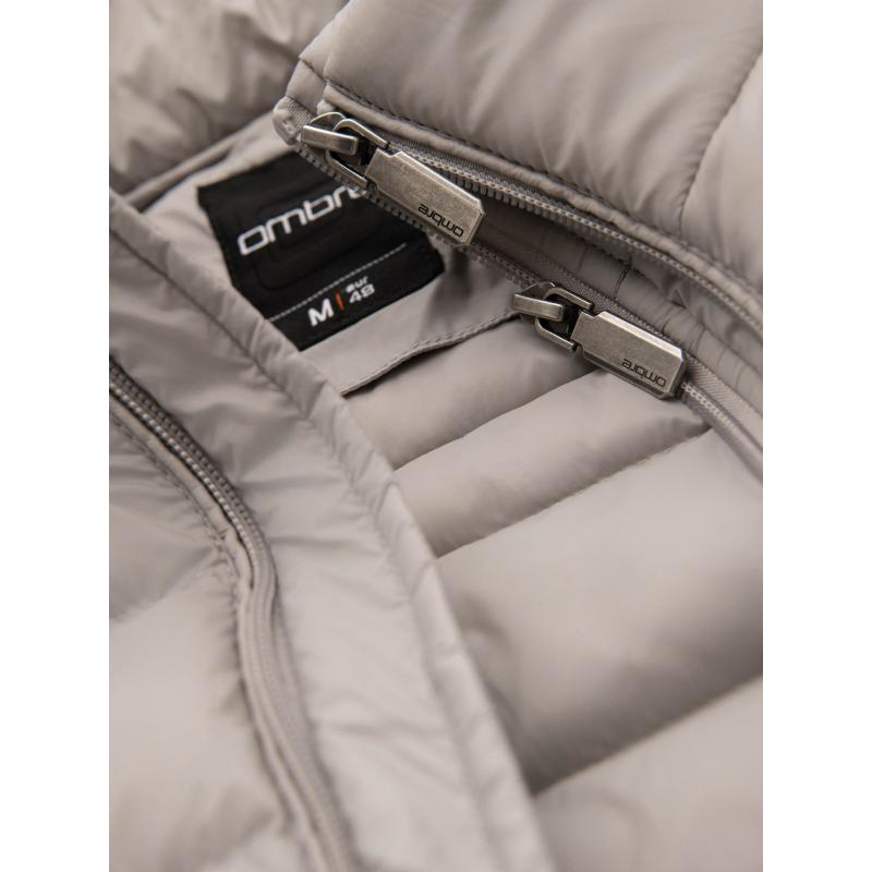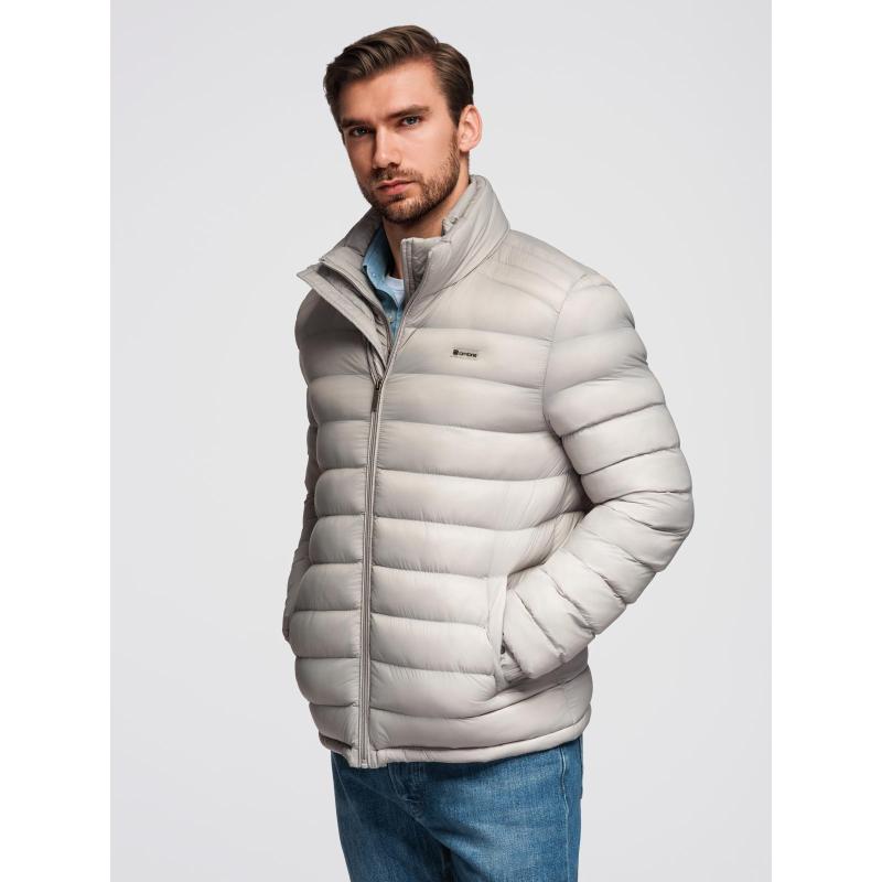 Pánská prošívaná bunda s stojáčkem a zipy na hrudi – tmavě modrá V2 OM-JALP-0260