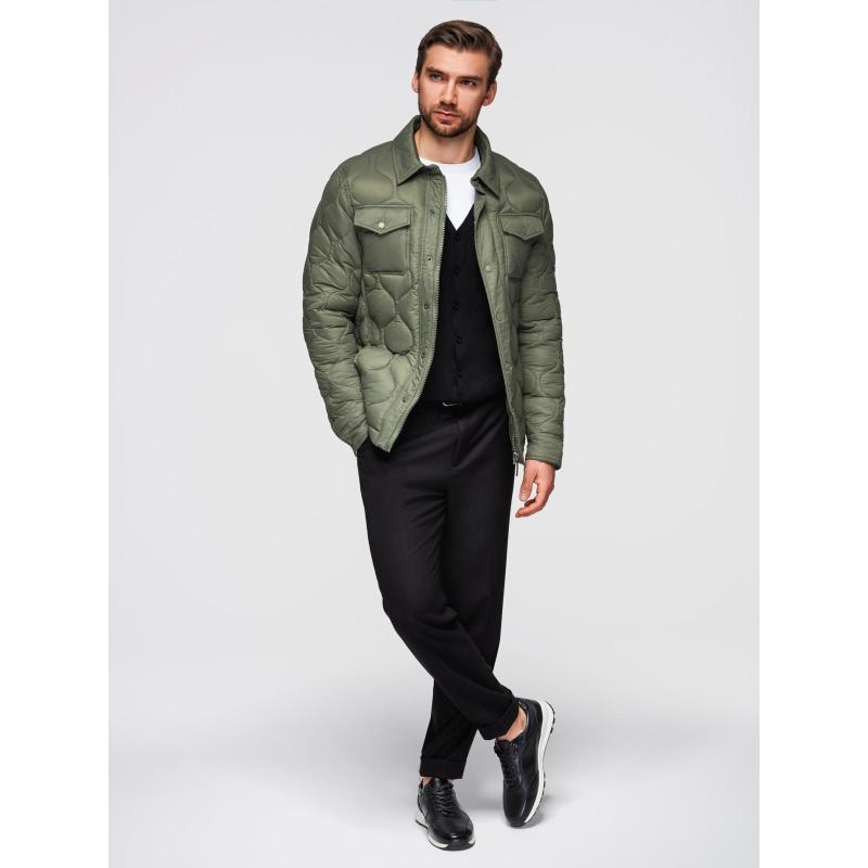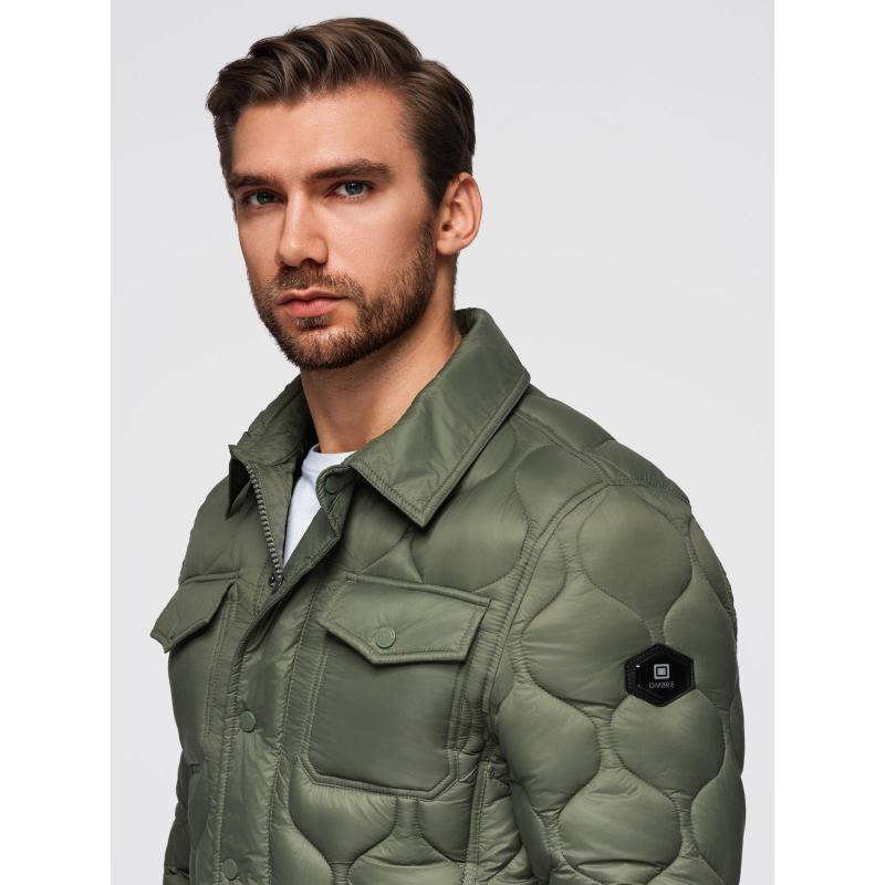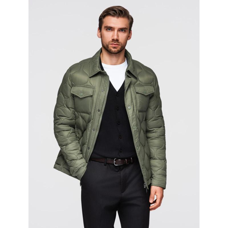 Pánská prošívaná bunda se dvěma zapínáními – světle šedá V2 OM-JALP-0231