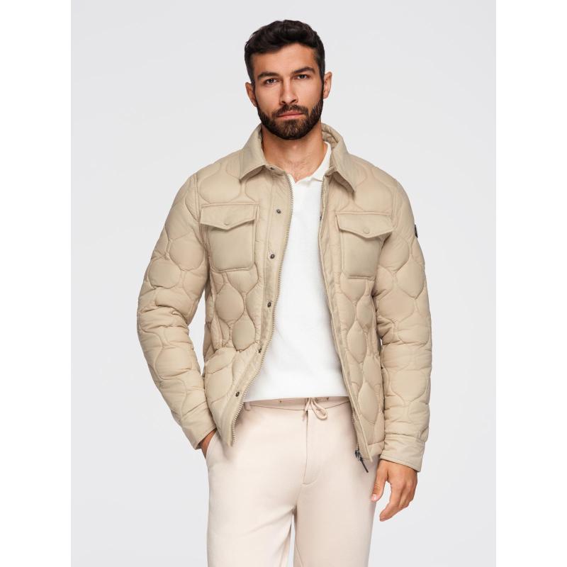 Pánská prošívaná bunda se dvěma zapínáními – tmavě modrá V1 OM-JALP-0231