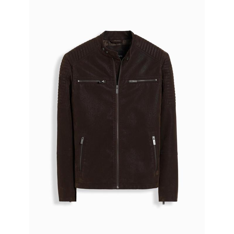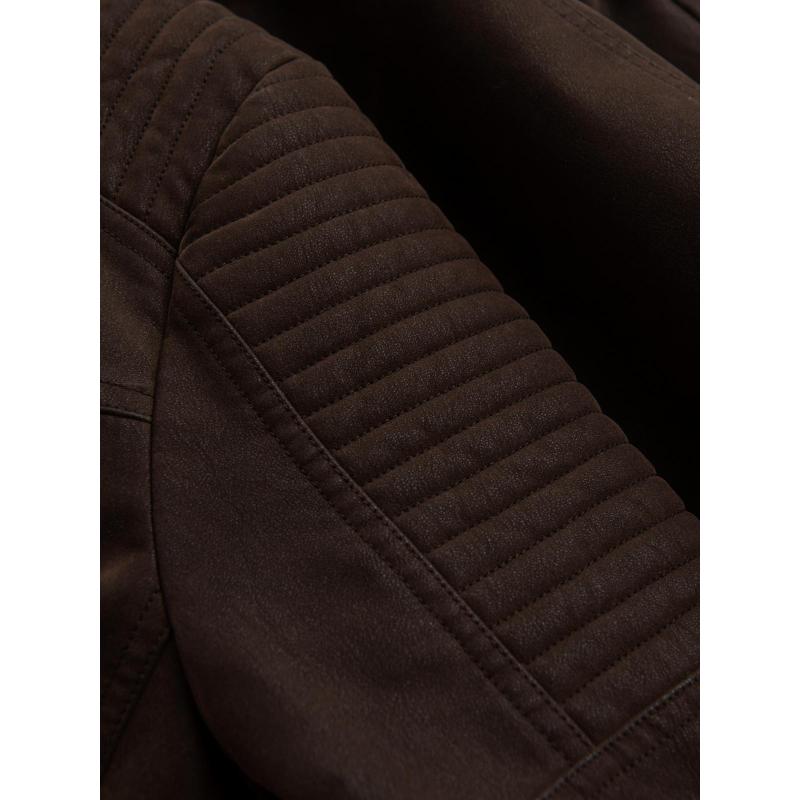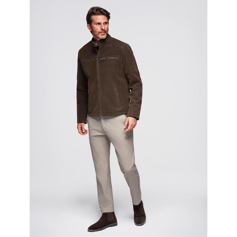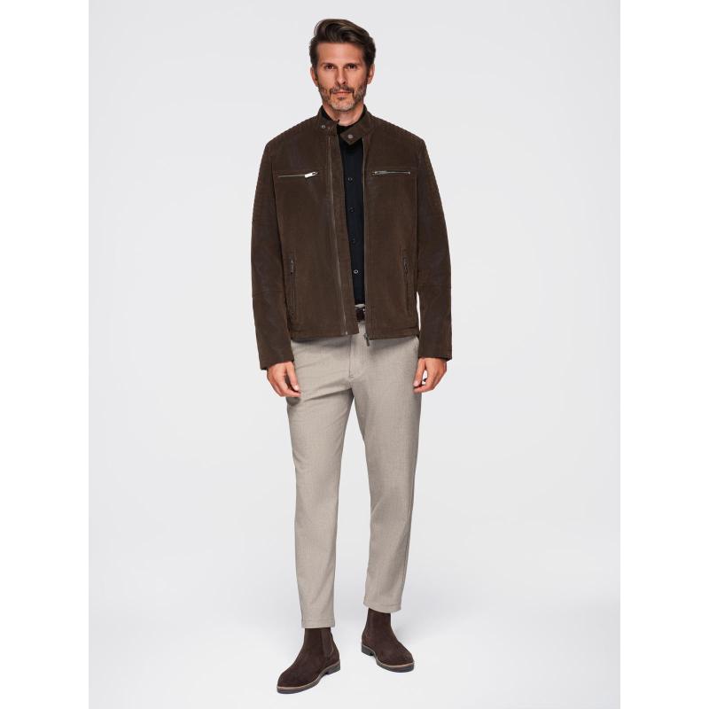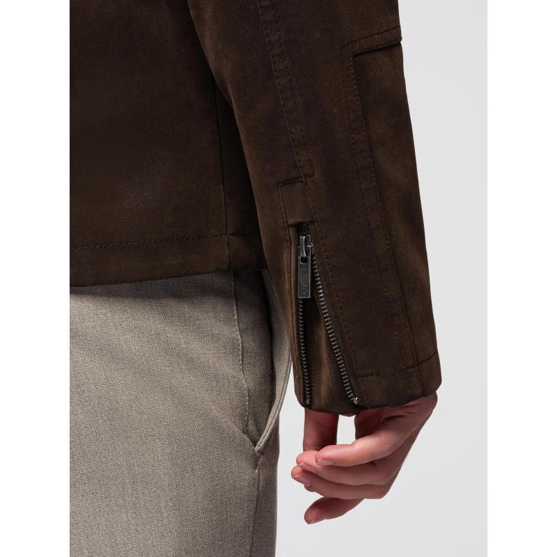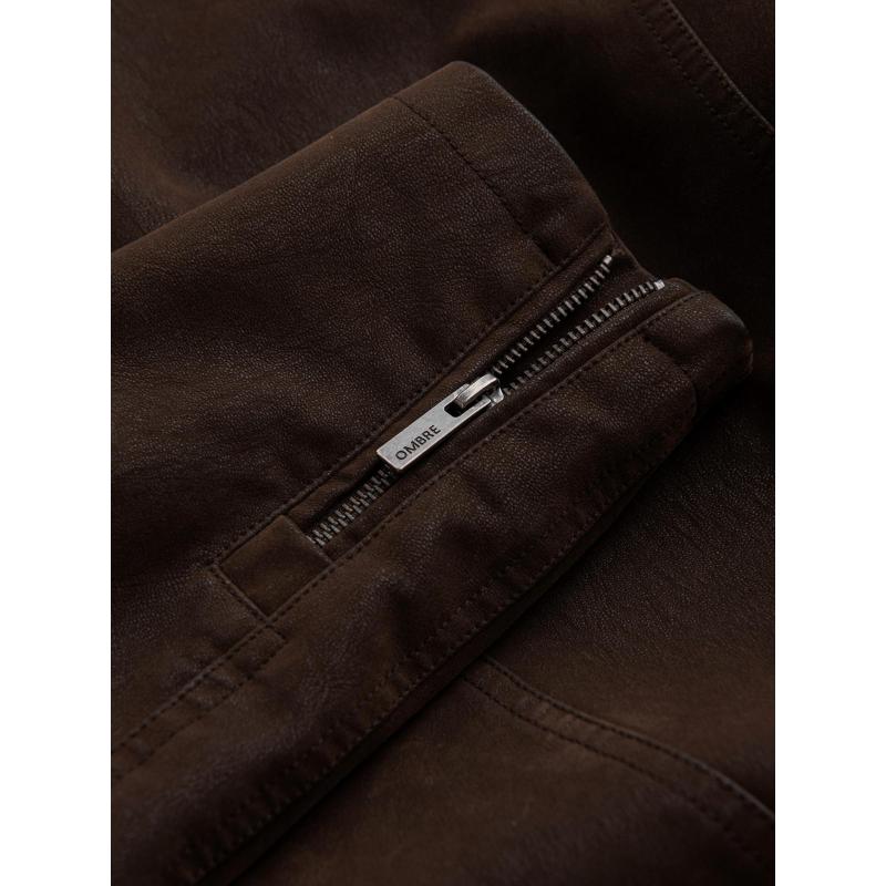 Pánská stylová bunda z ekologické kůže s límcem – tmavě hnědá V1 C637