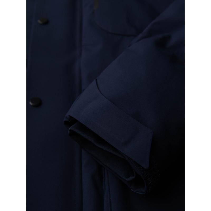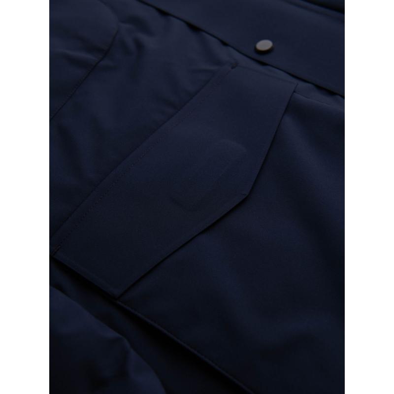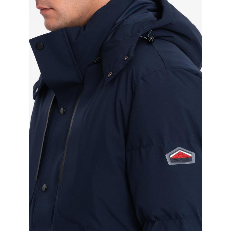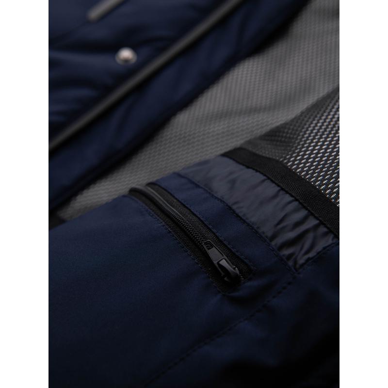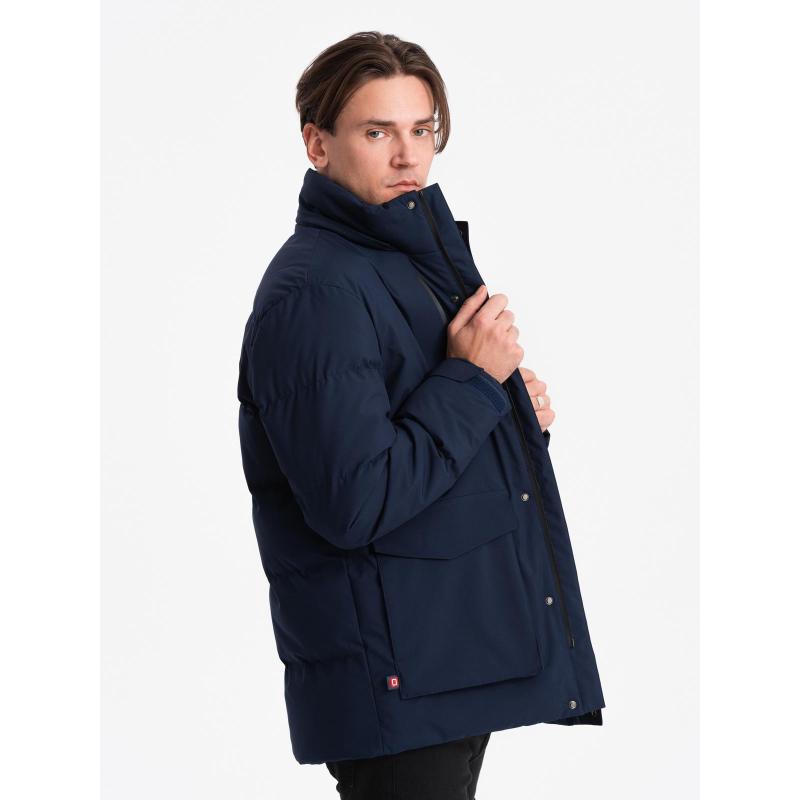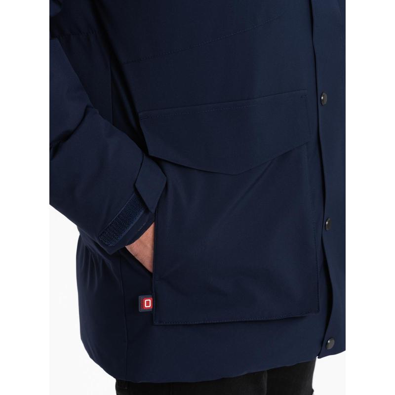 Pánská zimní bunda s odnímatelnou kapucí z nepromokavého materiálu – tmavě modrá V1 OM-JAHP-0306