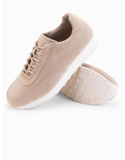 Pánské sportovní boty z ekologické kůže se semišovým povrchem – pískové V4 OM-FOCS-0161