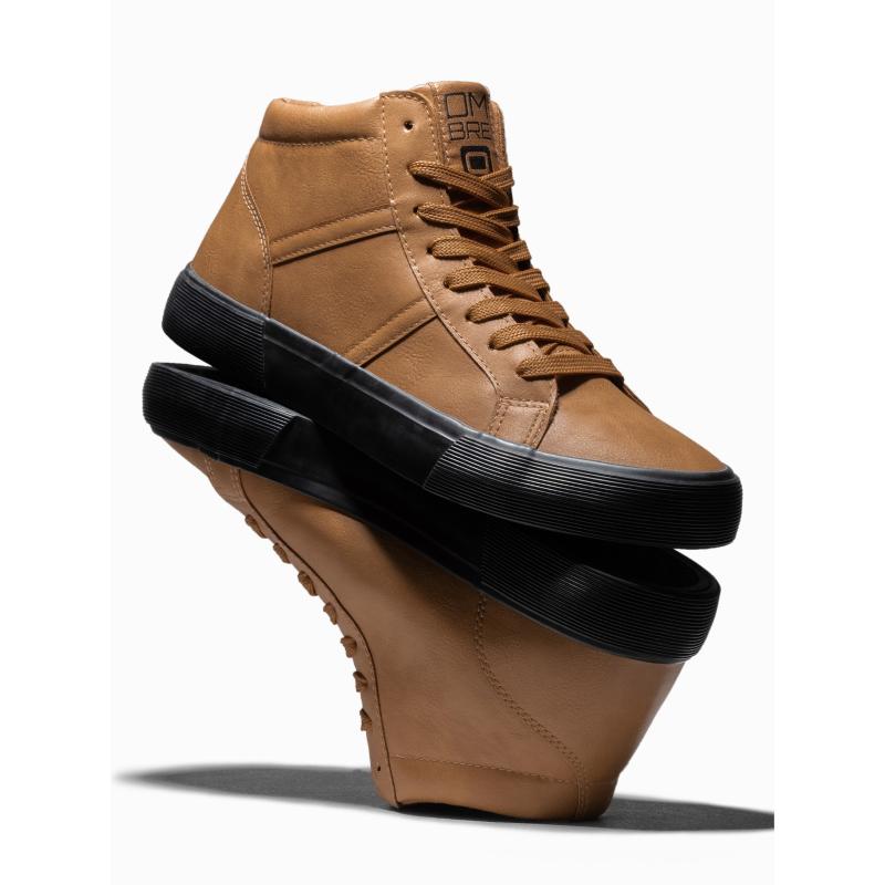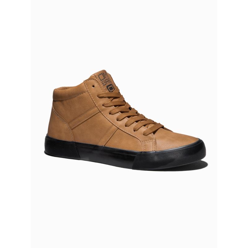 Pánské kotníkové tenisky s kontrastní podrážkou – velbloudí V5 OM-FOTH-0124
