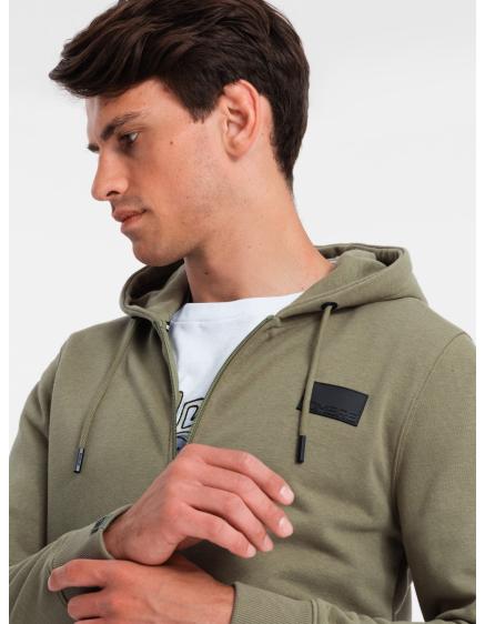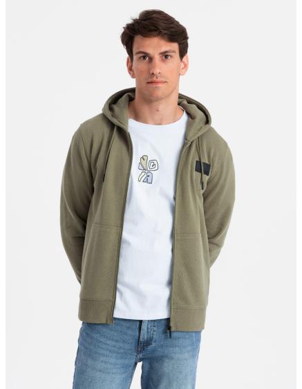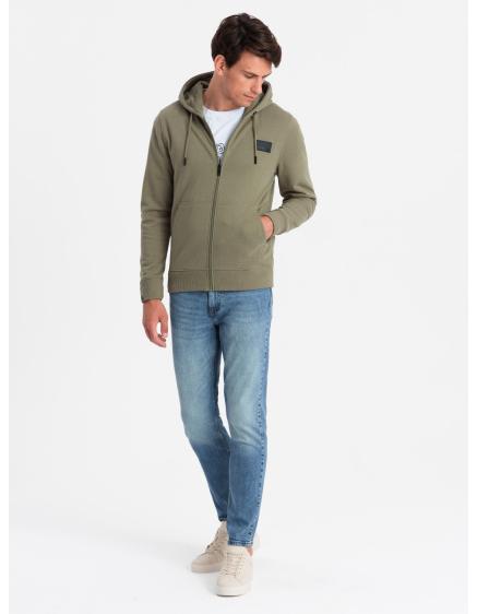 Pánská bavlněná mikina BASIC klokanka s kapucí olivová