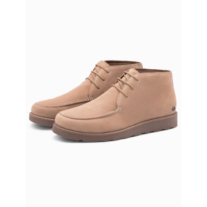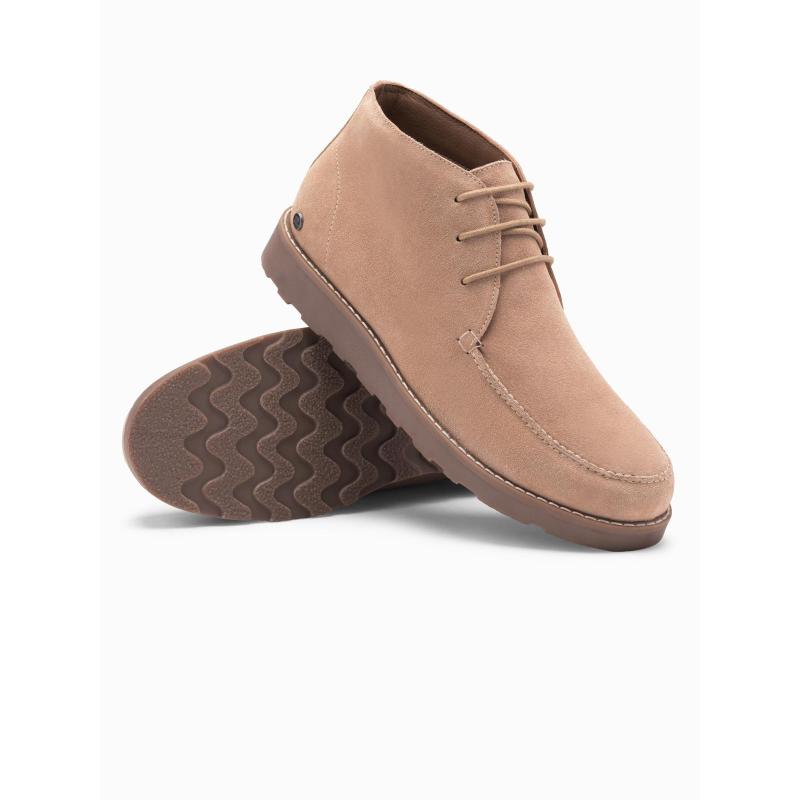 Pánské semišové kotníkové boty s tlustou podrážkou - béžové V1 OM-FOCS-0164