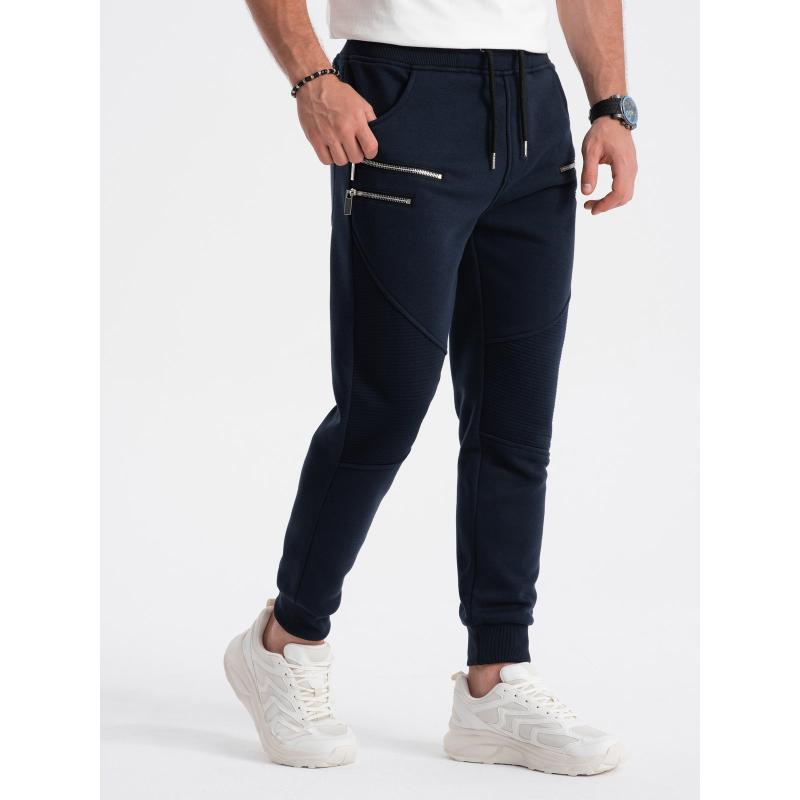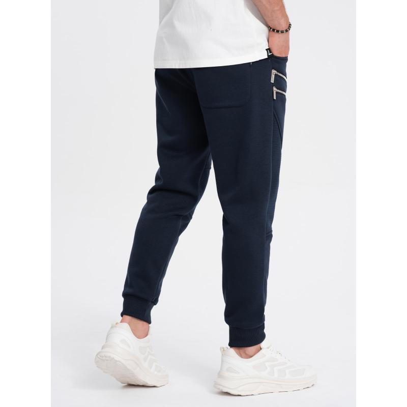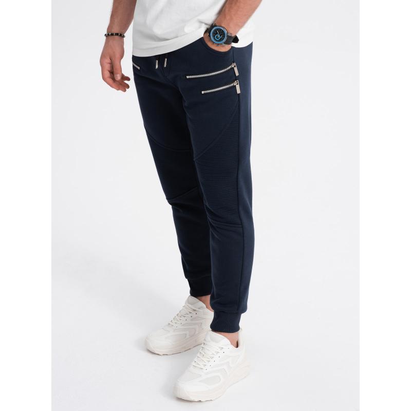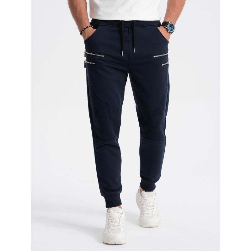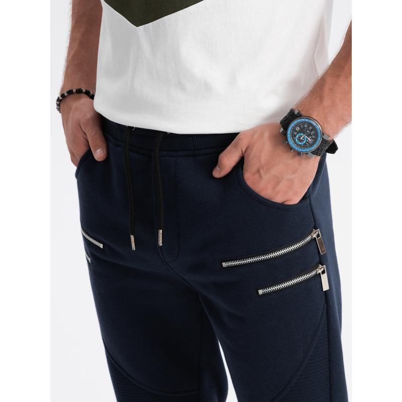Pánské tepláky s ozdobnými zipy V5 OM-PASK-22FW-012 tmavě modré