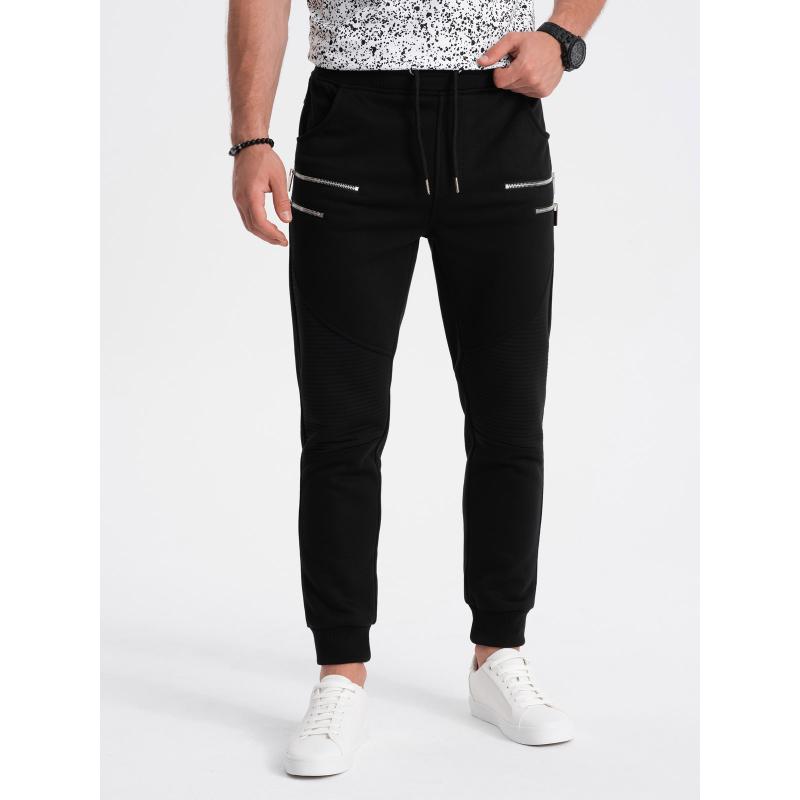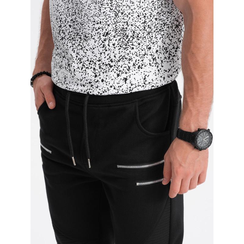 Pánské tepláky s ozdobnými zipy V6 OM-PASK-22FW-012 černé