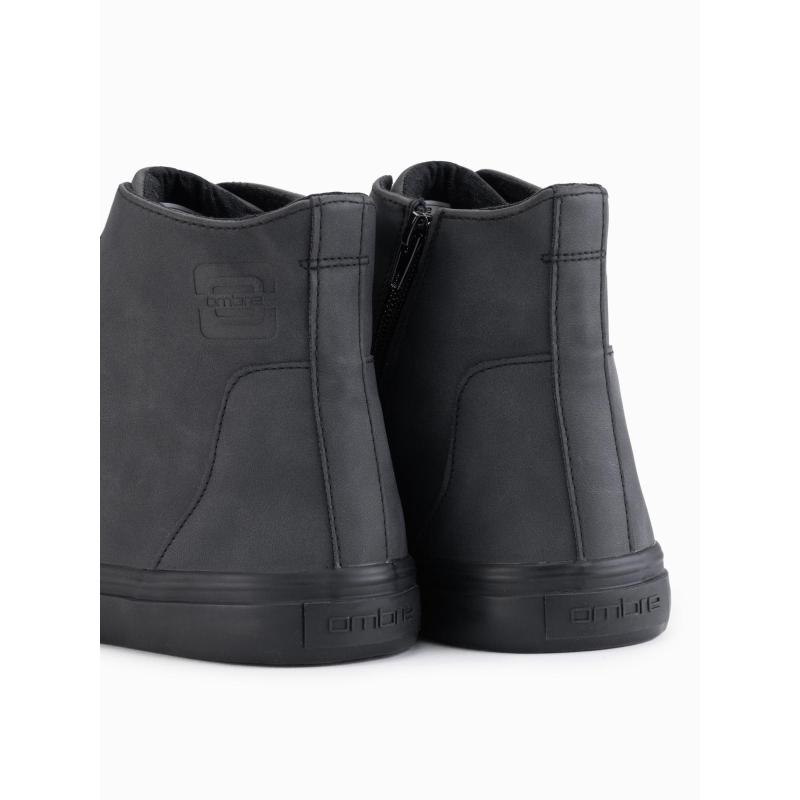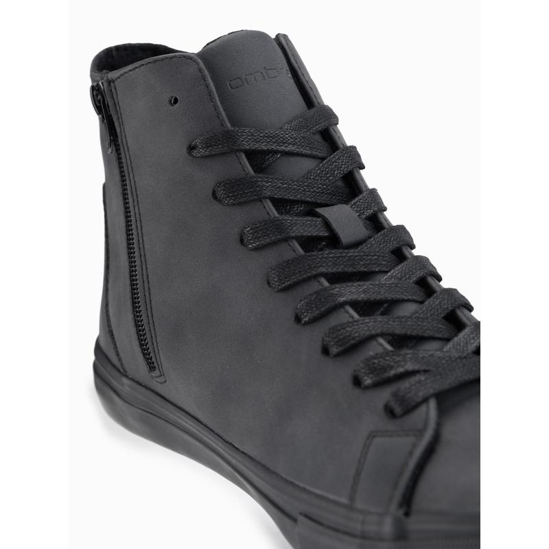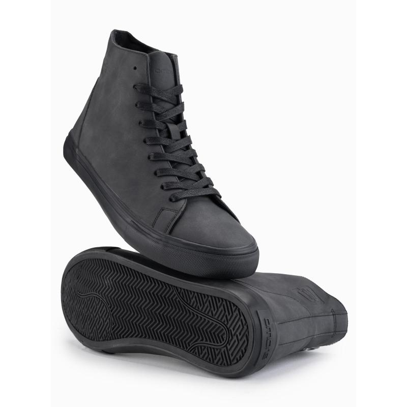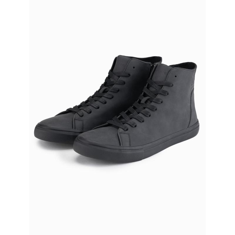 Pánské vysoké tenisky s matnou texturou a reliéfním logem – černé V1 OM-FOTH-0185