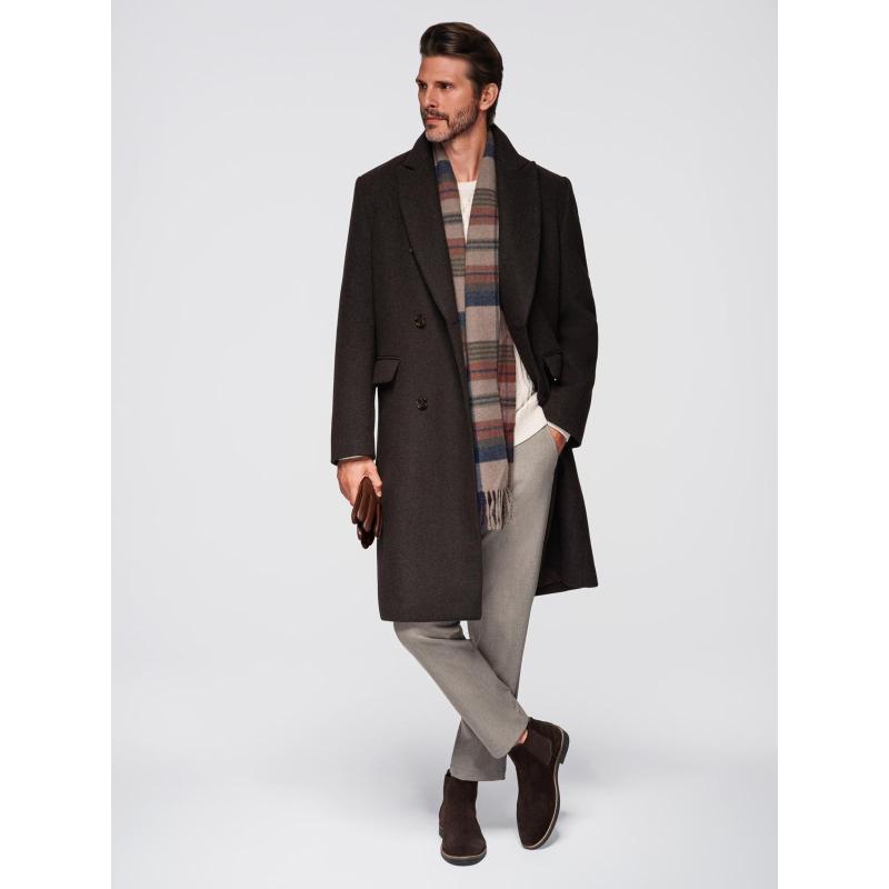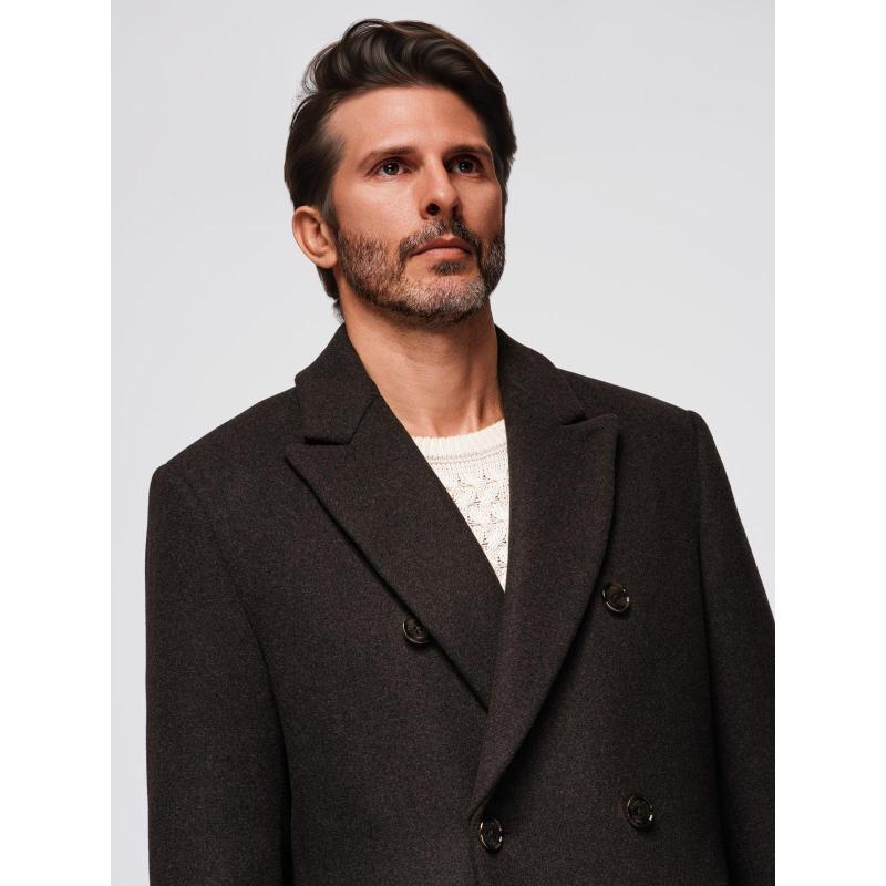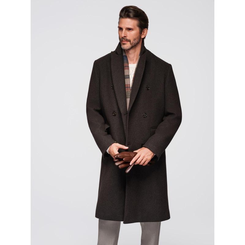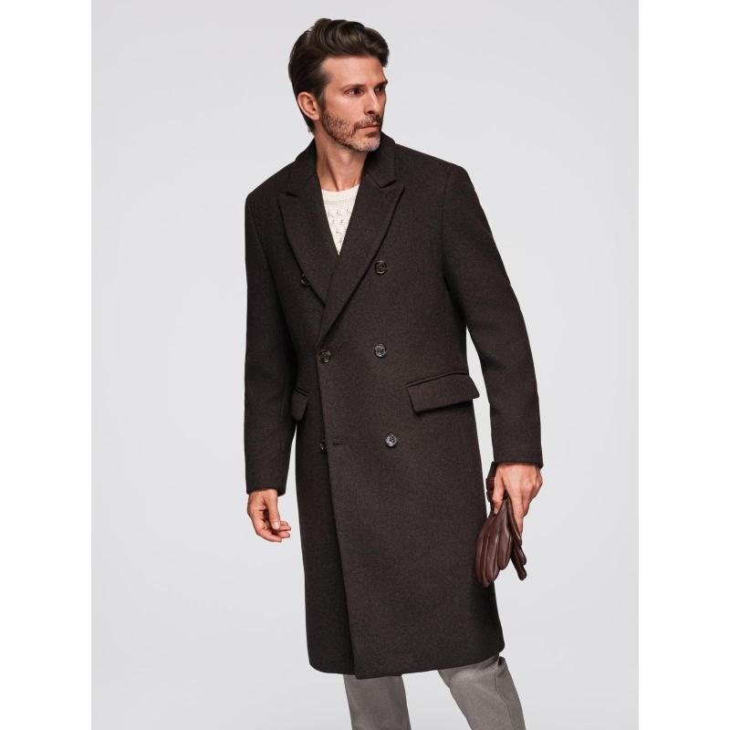 Pánský dvouřadový vlněný kabát – tmavě hnědý V3 OM-COWC-0133