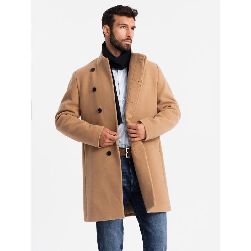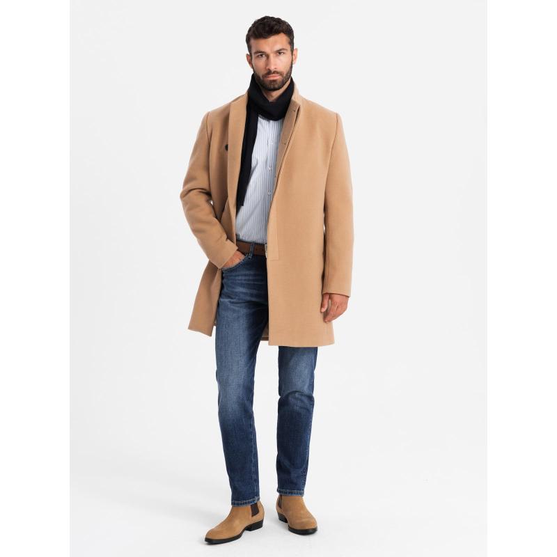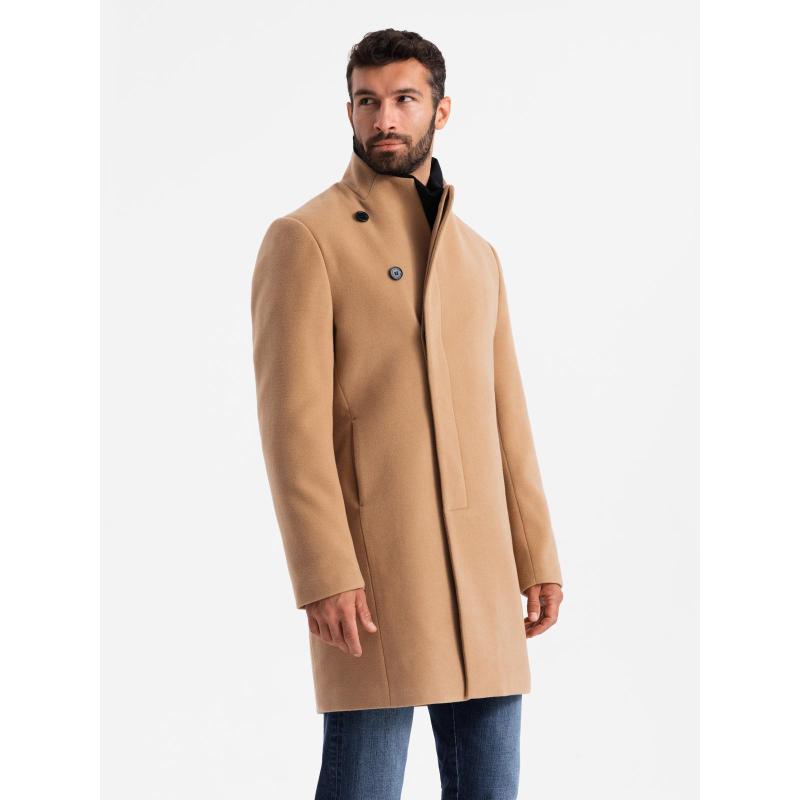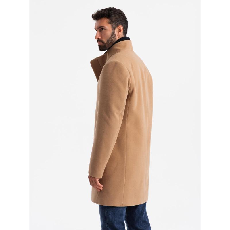 Pánský kabát s vysokým límcem a asymetrickým zapínáním – černá V2 OM-COWC-0141