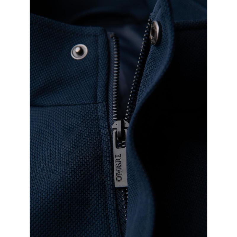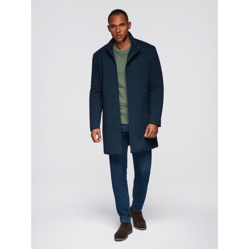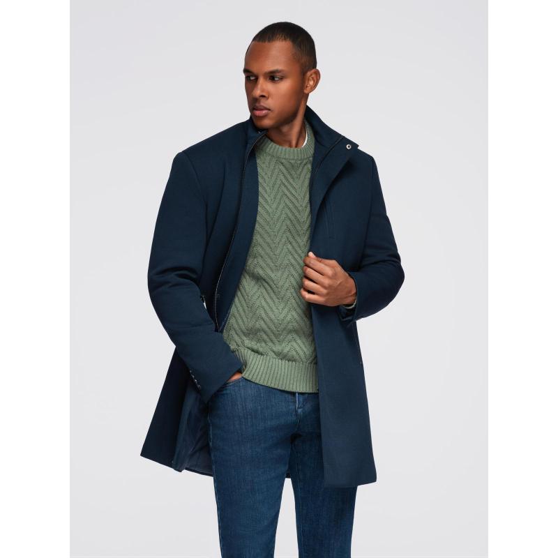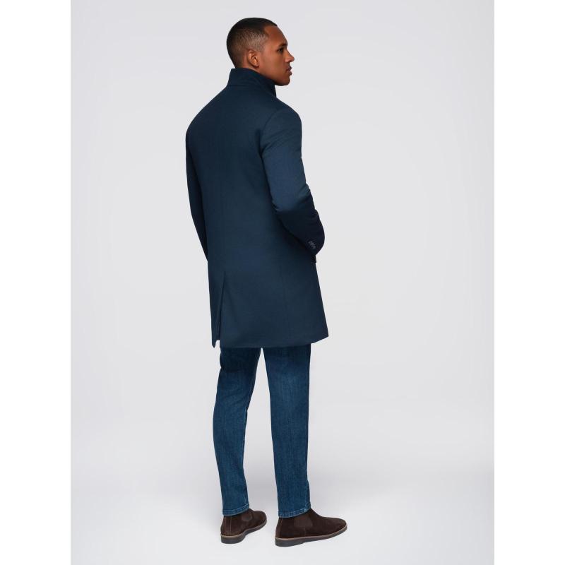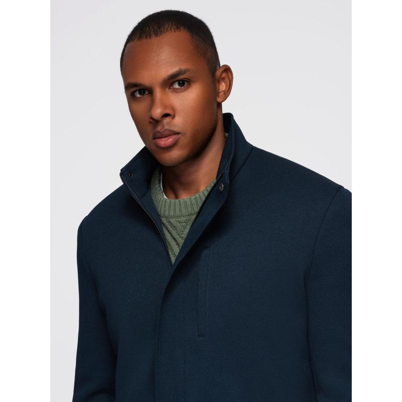 Pánský kabát s vysokým límcem a strukturovaným střihem – tmavě modrý V2 OM-COWC-0136