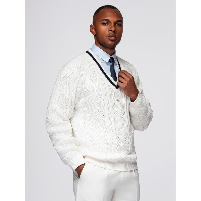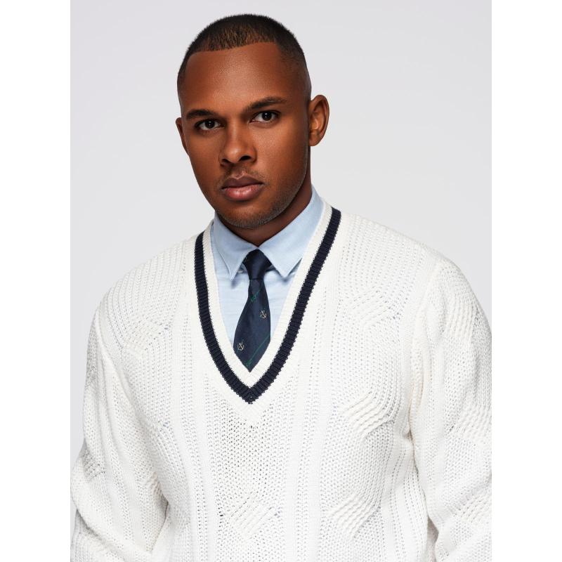 Pánský kostkovaný svetr s kulatým výstřihem – bílý V1 OM-SWSW-0151