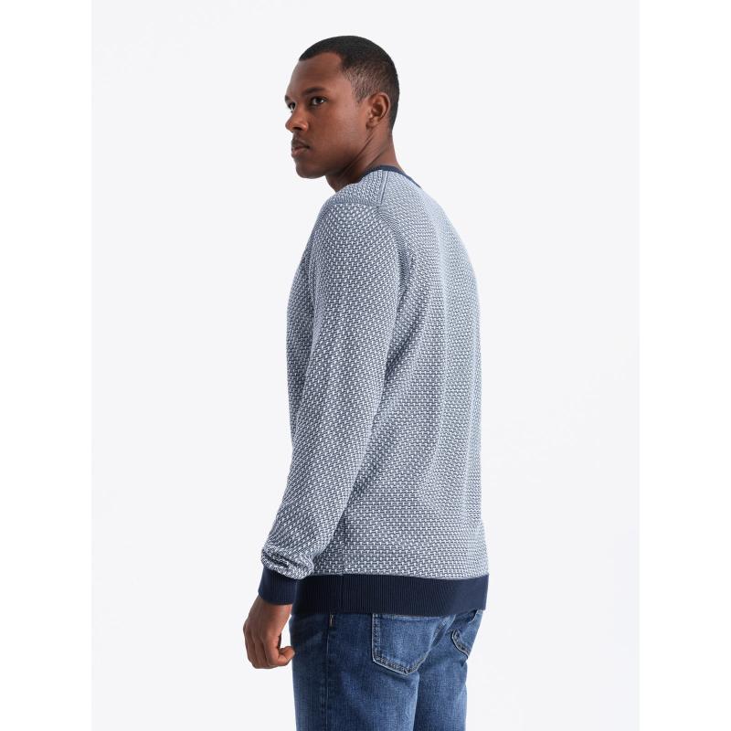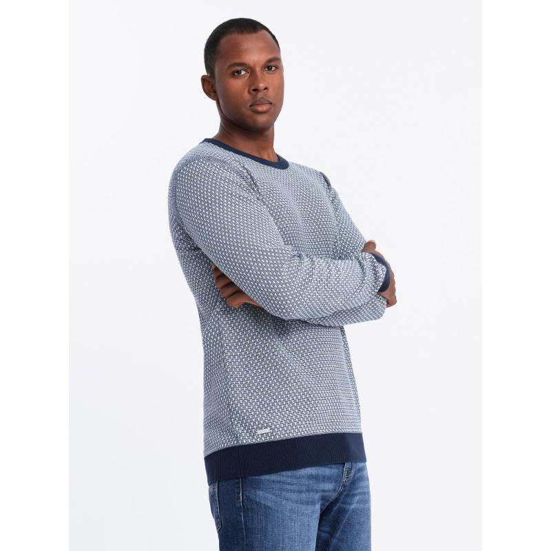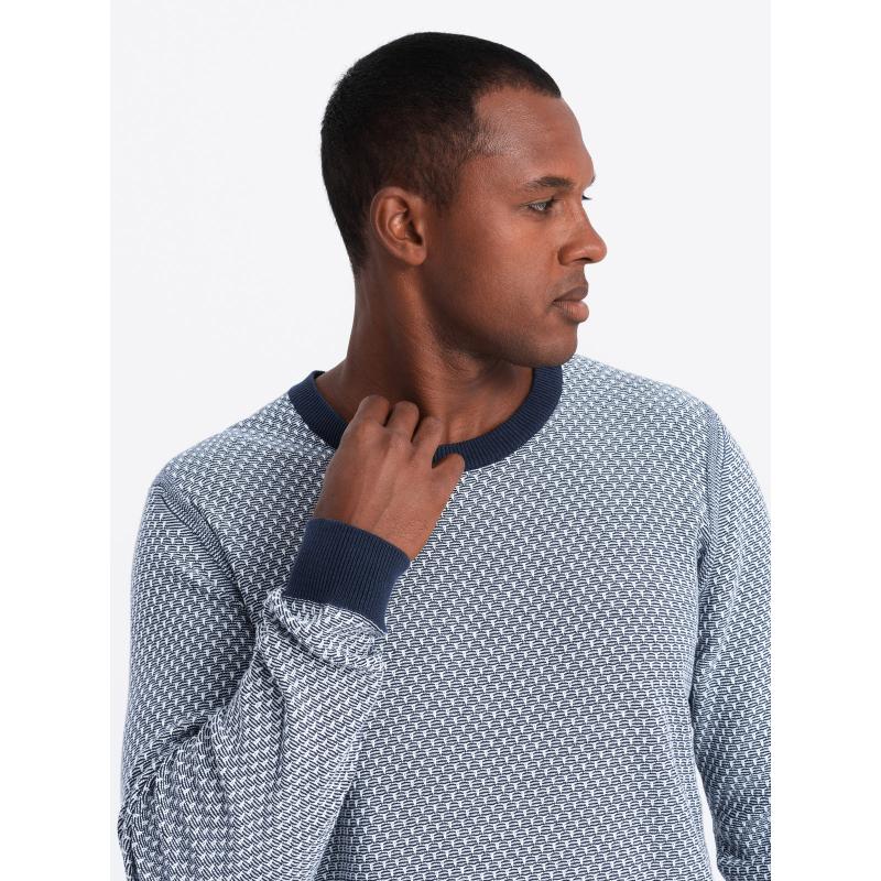 Pánský svetr RELAXED FIT se vzory – tmavě modrý V1 OM-SWSW-0111