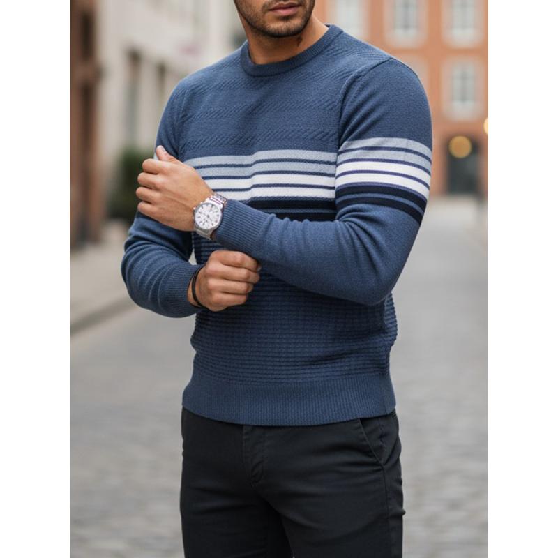 Chcete doručiť tovar na Slovensko? Prezrite si Pánsky pruhovaný sveter, modrý. Magyarországra történő kiszállításért tekintse meg ezt a termékoldalt: Férfi csíkos pulóver, kék.