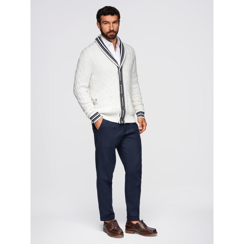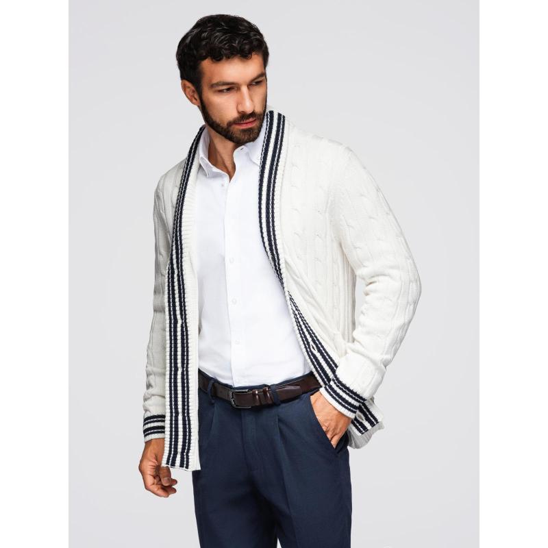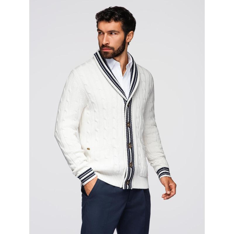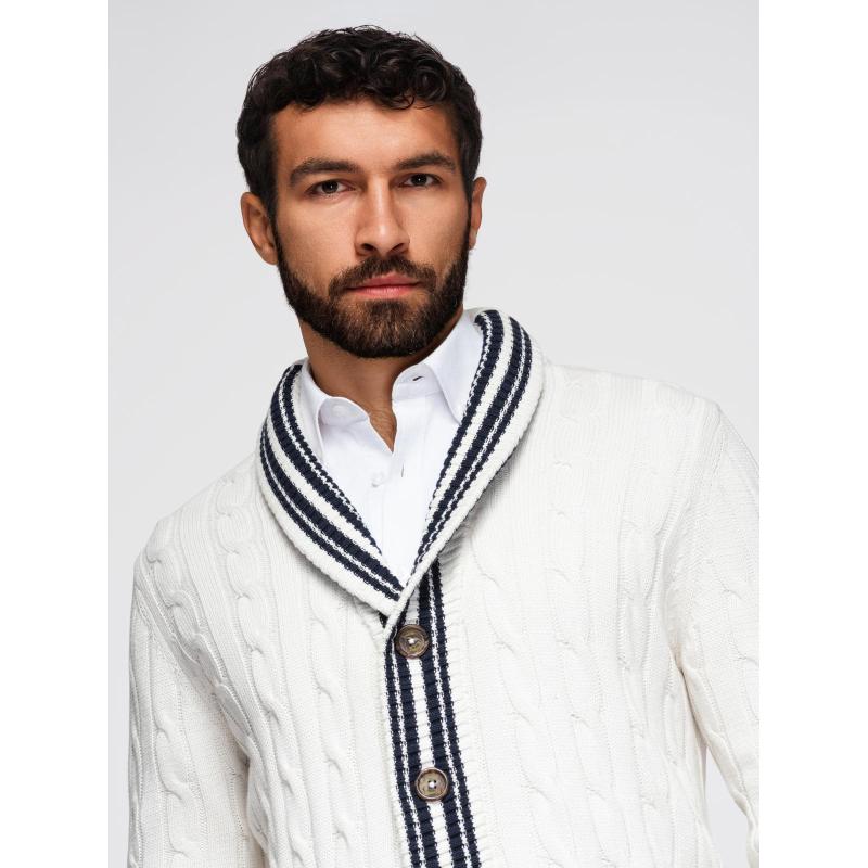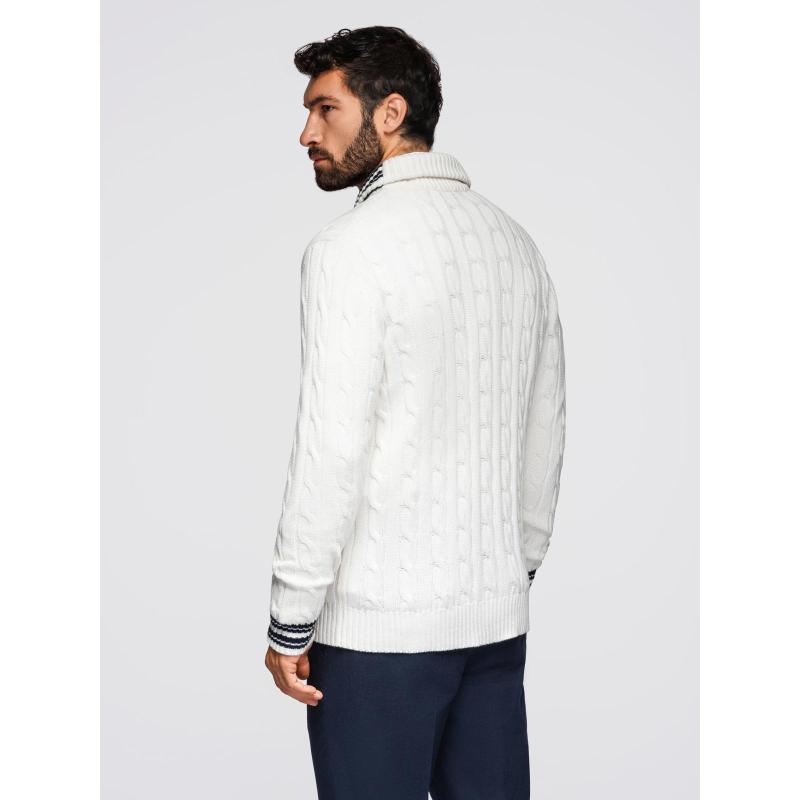 Pánský svetr s šálovým límcem v preppy stylu – bílý V1 OM-SWCD-0152