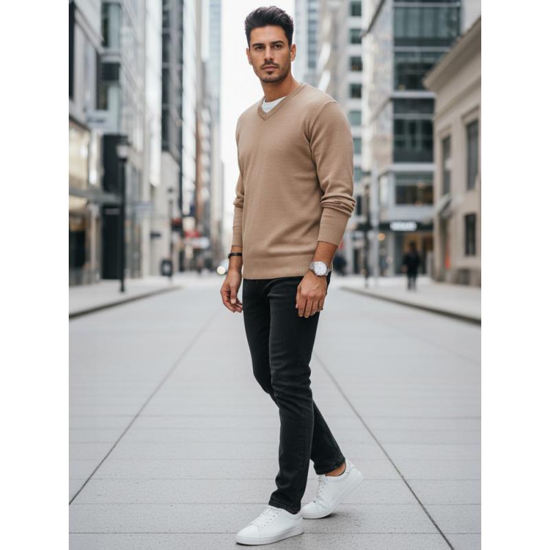 Pánský svetr s výstřihem do V, kamelový
