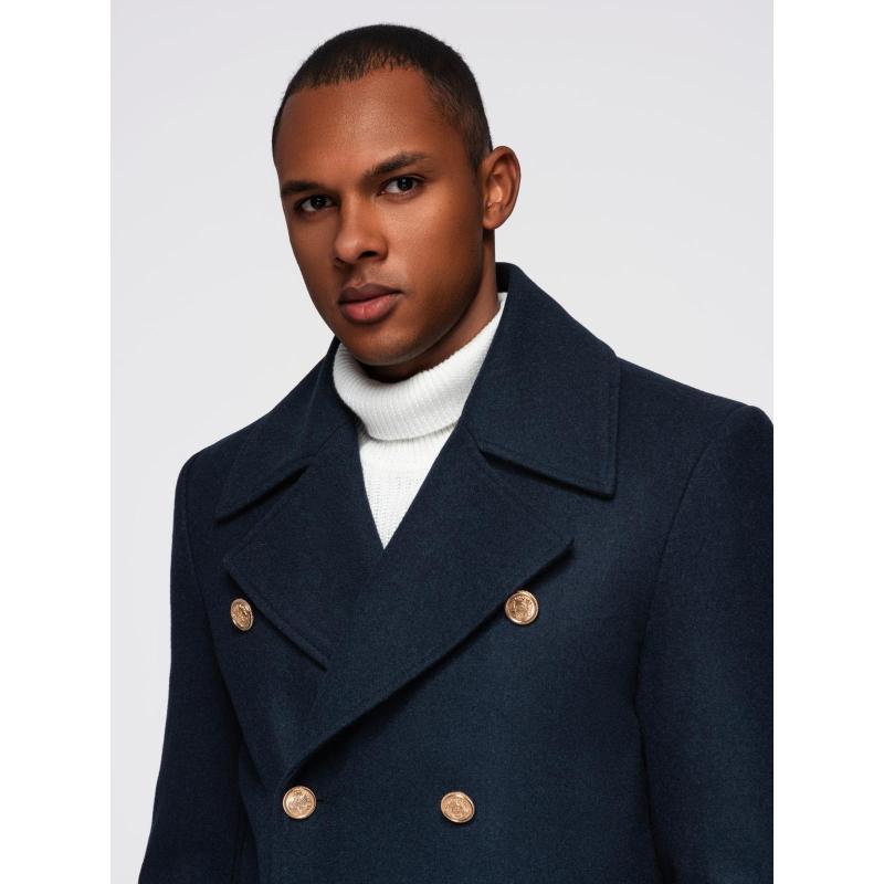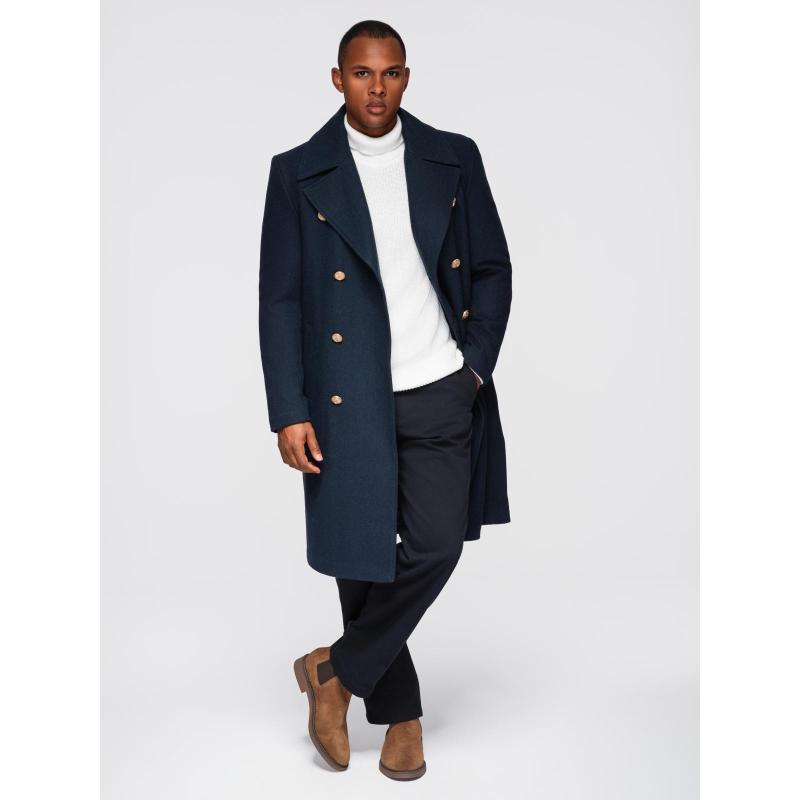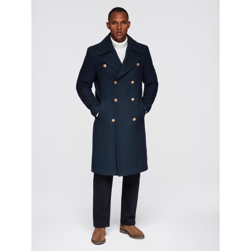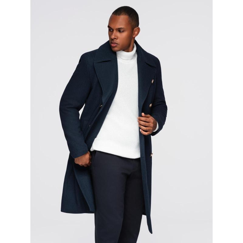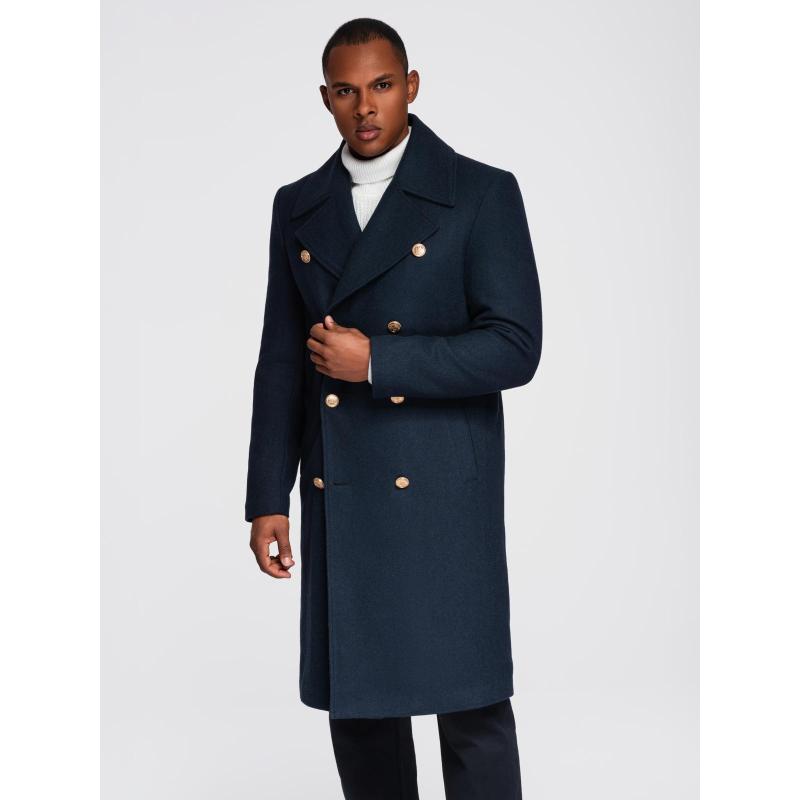 Pánský tmavě modrý dvouřadový vlněný kabát – tmavě modrý V1 OM-COWC-0134
