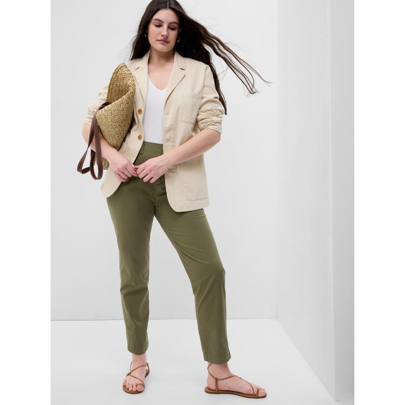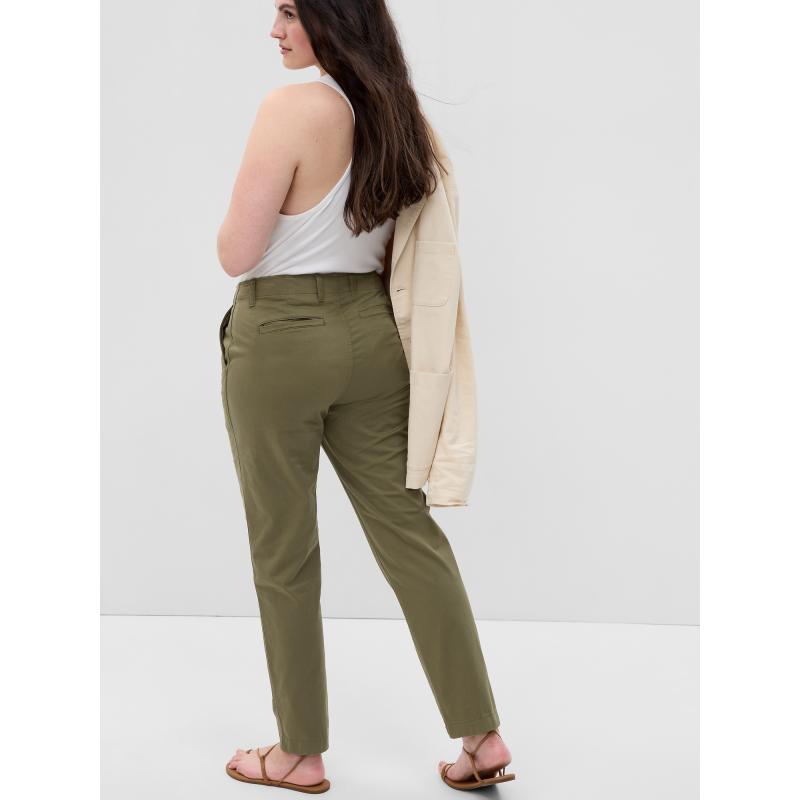 Dámské kalhoty ve slim střihu z měkkého bavlněného streče přinášejí čistý a upravený vzhled s maximálním pohodlím.Středně vysoký pas a přiléhavý střih přes boky a stehna vytvářejí elegantní siluetu s lehkým uvolněním v oblasti stehen.Úzká nohavice sahá ke kotníkům a skvěle se kombinuje s obuví na podpatku i s teniskami.Skryté zapínání na háček a zip udržuje hladkou linii pasu, šikmé kapsy vpředu a zadní kapsy dodávají praktický i stylový prvek.Tyto kalhoty jsou ideální na pracovní dny i víkendové aktivity – univerzální kousek, který snadno přejde z kanceláře do volnočasového outfitu.Modelka ve velikosti S (US 4) měří cca 178 cm.Modelka ve velikosti L (US 14) měří také cca 178 cm. 97 % bavlna, 3 % elastan