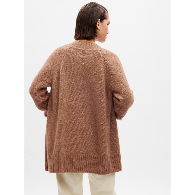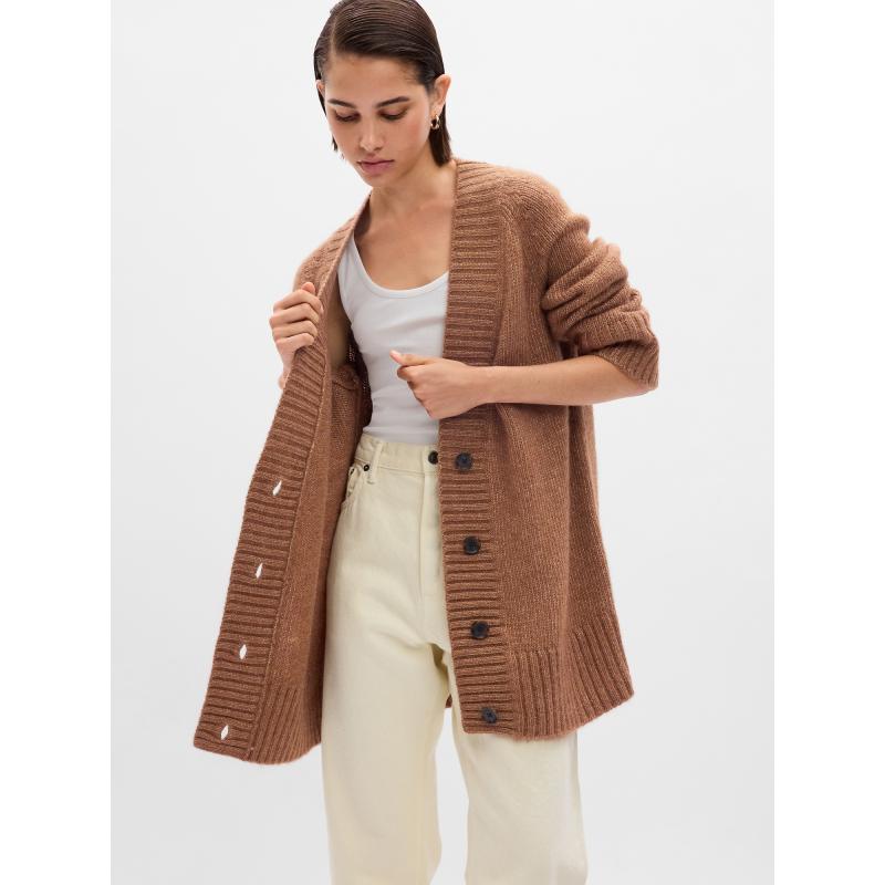 Dámský pletený kardigan.Se zapínáním na knoflíky.Prodloužená délka i rukávy.S příměsí vlny.Pokud rády nosíte přiléhavý střih, volte o číslo menší velikost. 45 % polyester, 30 % recyklovaný polyester, 10 % vlna, 10 % nylon, 5 % Alpaka