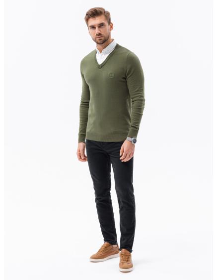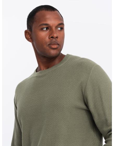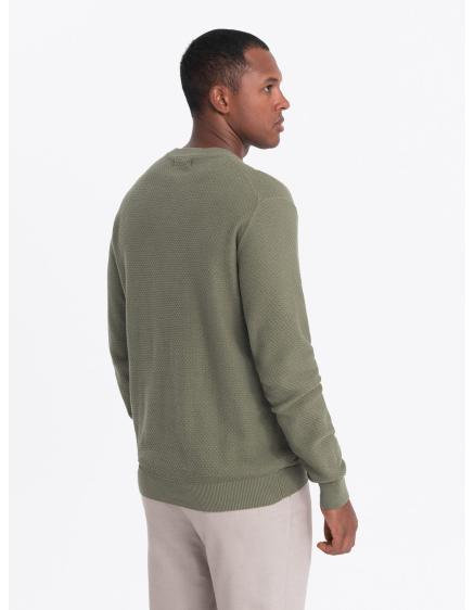 Pletený pánský svetr RELAXED FIT se vzory - tmavě modrý V1 OM-SWSW-0111