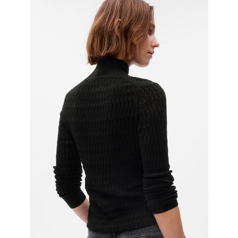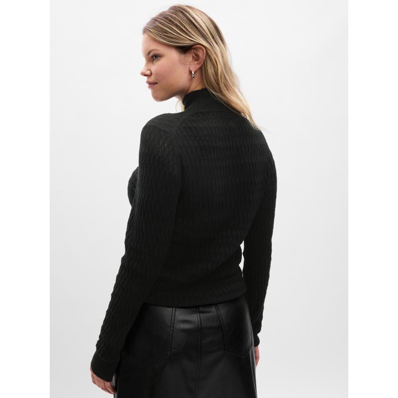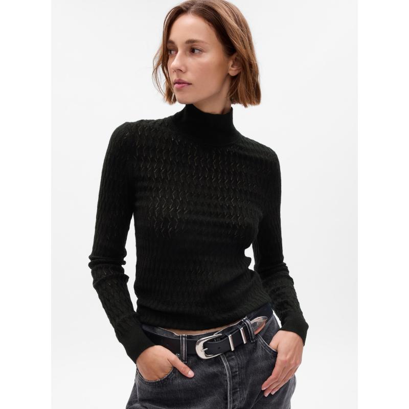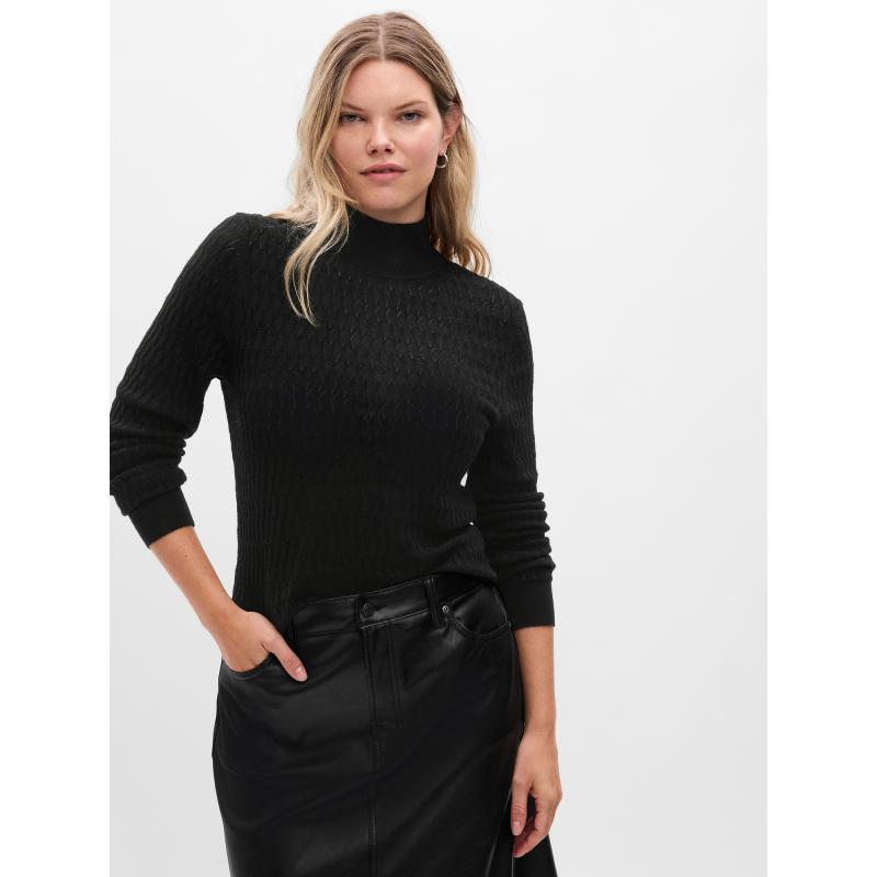 Dámský jednobarevný svetr.Měkká pletenina se vzorem.U krku žebrovaný stojáček.Dlouhé rukávy s náplety.S příměsí vlny. 55 % nylon, 30 % vlna Responsible Wool Standard (RWS), 15 % polyester
