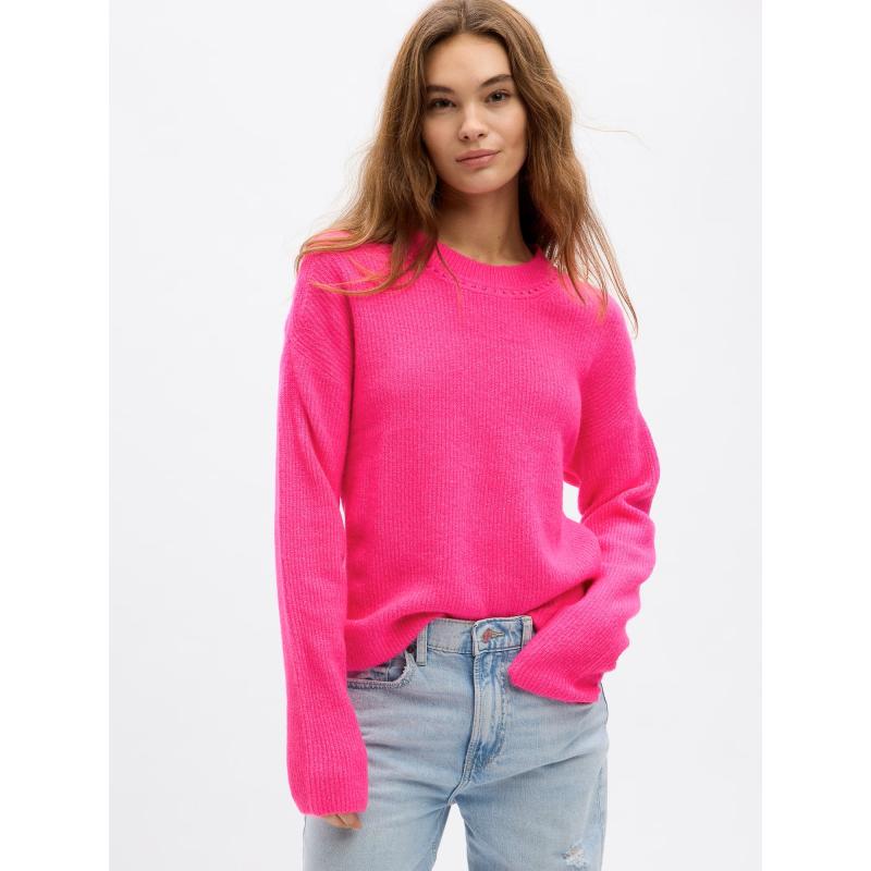 Dámský jednobarevný svetr.Měkká žebrovaná pletenina.Dlouhé rukávy.Kulatý výstřih. 75 % akryl, 22 % polyester, 3 % elastan