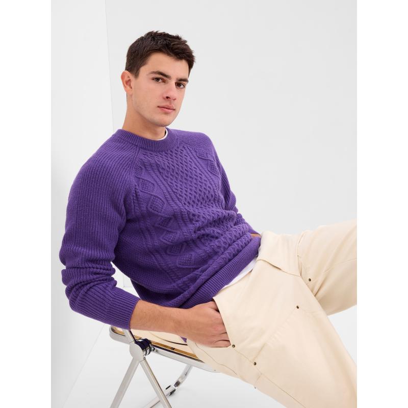 Pánský jednobarevný svetr.Výrazný vzor na přední straně.Dlouhé raglánové rukávy.Kulatý výstřih s žebrovaným nápletem.Příjemná měkká pletenina s příměsí vlny. 60 % bavlna, 30 % nylon, 10 % vlna