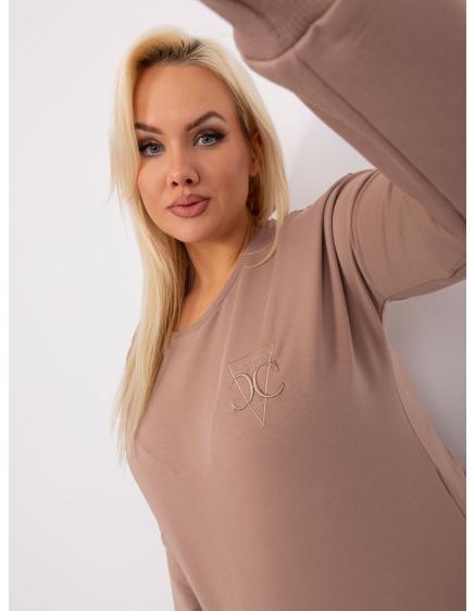 Dámská halenka z bavlny plus size DOUBLE hnědá ecru