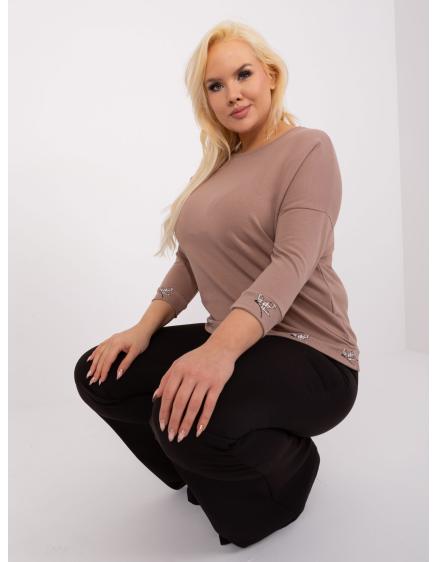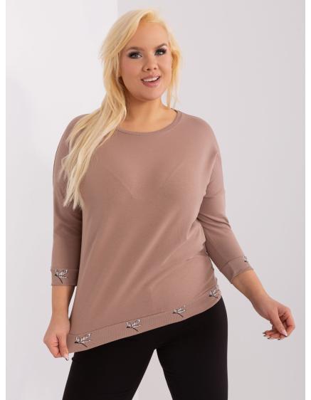 Dámská halenka s 3/4 rukávy plus size EVA tmavě béžová