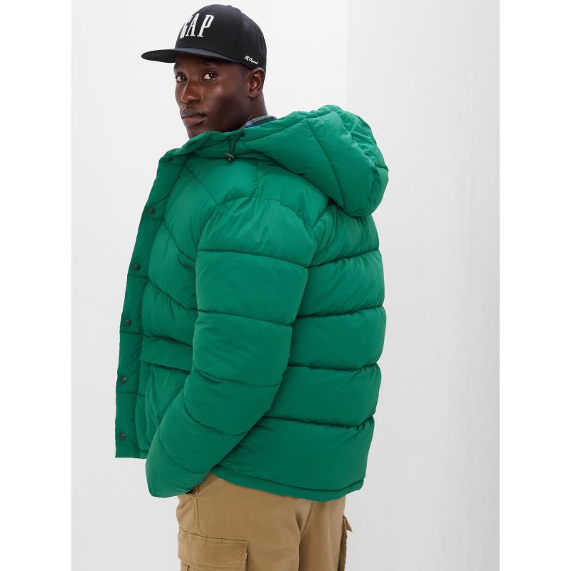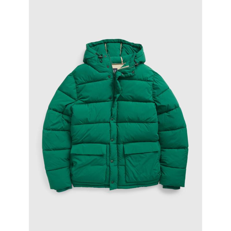 Pánská jednobarevná prošívaná bunda.Zateplena vrstvou ze 100% recyklovaného nylonu.Se zapínáním na zip a krycí klopu.U krku vysoký stojáček s kapucí.Kapuci s regulací obvodu nelze odepnout.Našité velké kapsy s klopou.Vrchní vodoodpudivá vrstva. 100 % recyklovaný nylon