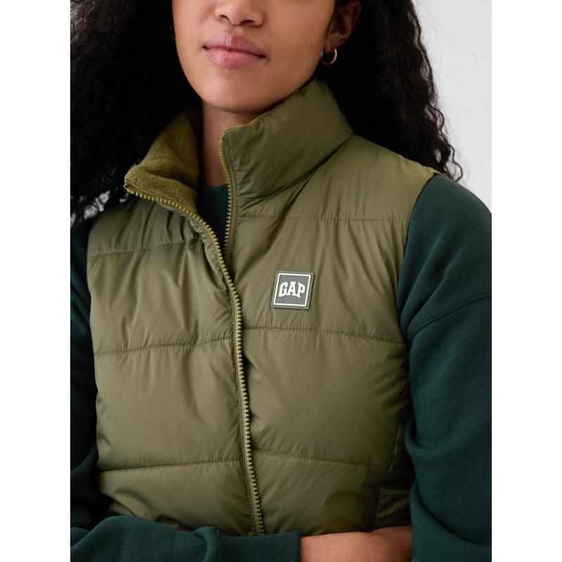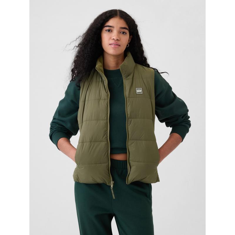 Stylová vesta navržena tak, aby vás udržela v teple a suchu i v chladnějším počasí.Vyrobena z voděodolného prošívaného materiálu nabízí spolehlivou ochranu před vlhkostí.Vesta je bez rukávů, což umožňuje snadné vrstvení.Stojáček a zapínání na zip pomáhají udržet teplo.Logo Gap na hrudi.Přední praktické kapsy.Vesta je vyplněna 100% recyklovanou výplní Wellon – lehký a teplý ekologický materiál šetrný k životnímu prostředí.Rovný a pohodlný střih. 100 % nylon