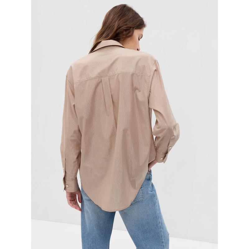 Dámská pruhovaná košile.Oversize - Big Shirt.Límeček a zapínání na knoflíčky.Na hrudi našitá malá kapsička.Zaoblený spodní lem.Vetkaná lurexová příze. 92 % bavlna, 8 % metalické vlákno
