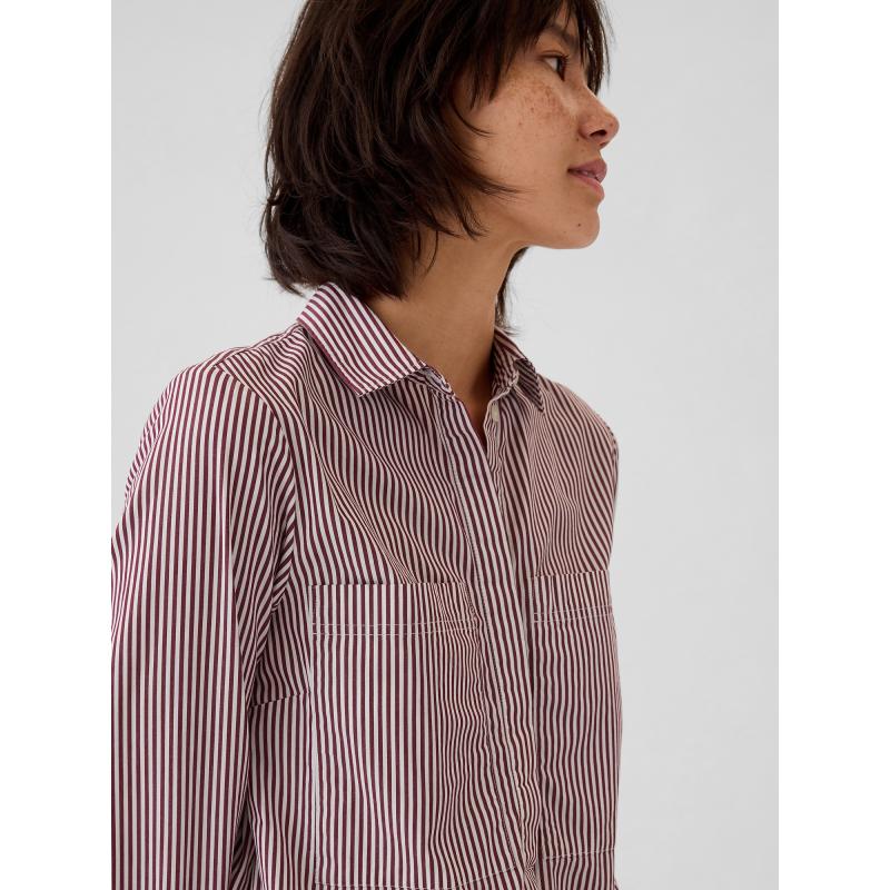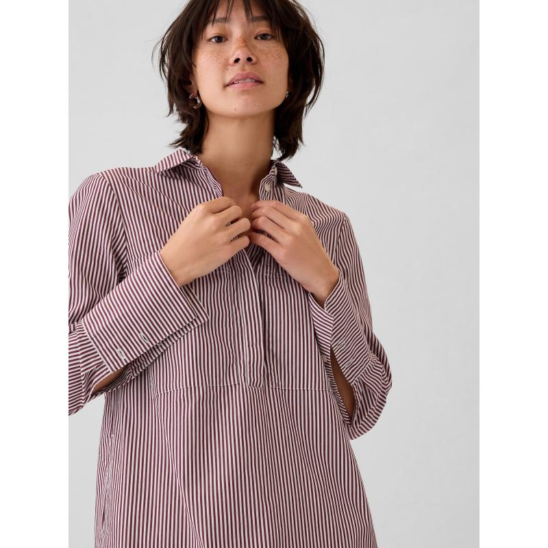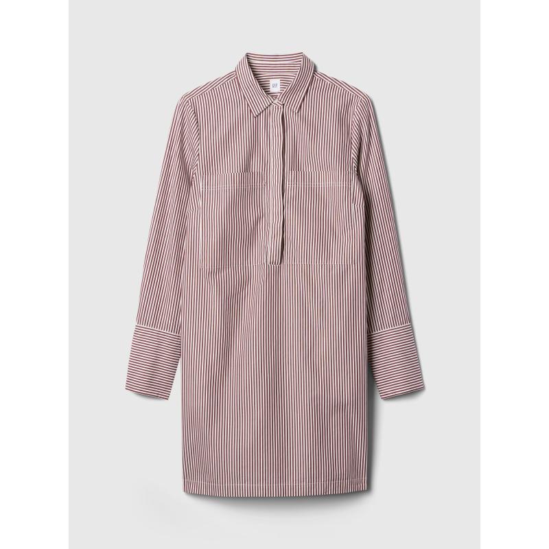 Dámské měkké bavlněné košilové mini šaty. Knoflíky na přední části. Dlouhé rukávy s kontrastními manžetami. Náprsní kapsy. Celoplošný pruhovaný potisk. Vyrobeno ze 100% organické bavlny. Áčkový volnější střih. Délka nad kolena. Modelky nosící velikost S od značky Gap měří 172–180 cm a mají pas 60–66 cm a boky 84–97 cm. Modelky nosící velikost XL od značky Gap měří 172–180 cm a mají pas 86–91 cm a boky 114–127 cm. 100 % organická bavlna