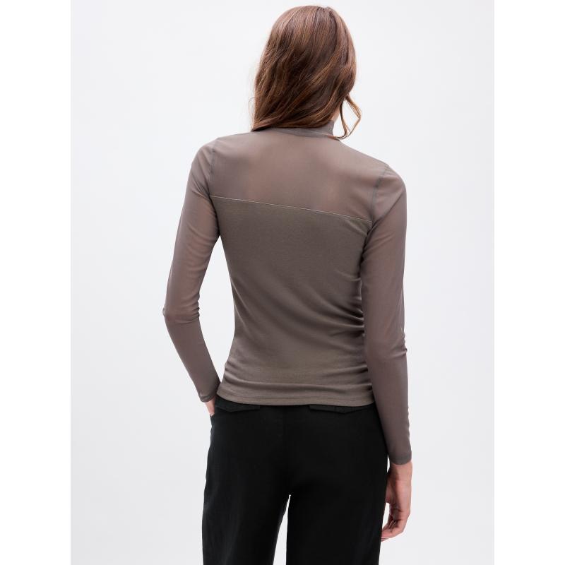 Dámský průsvitný top.U krku stojáček.Dlouhé rukávy z průsvitné síťoviny.Pružný a příjemný materiál.Přiléhavý střih. 58 % bavlna, 39 % Birla Modal, 3 % elastan