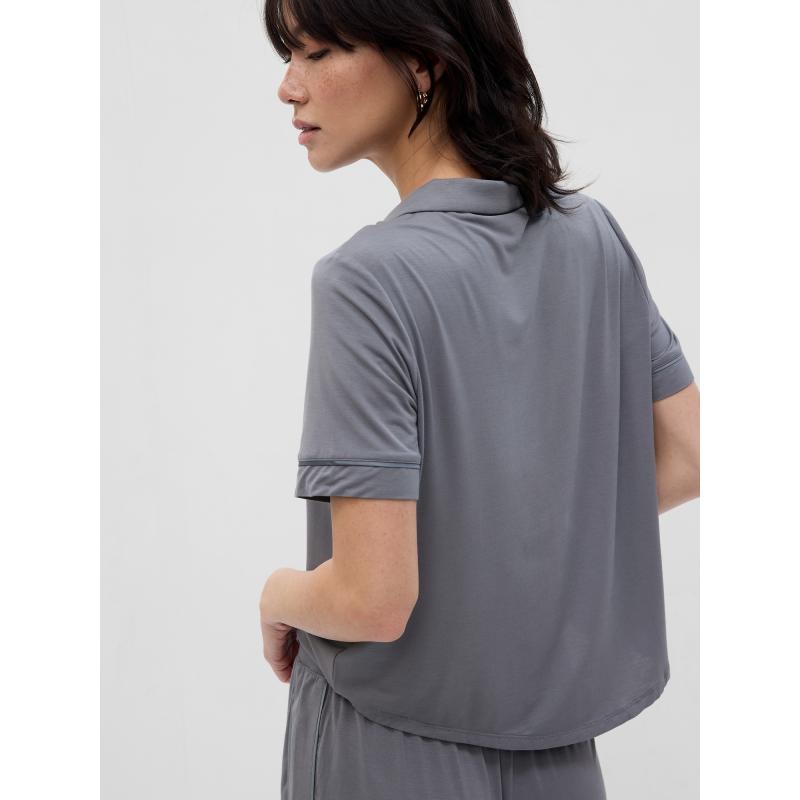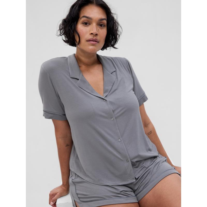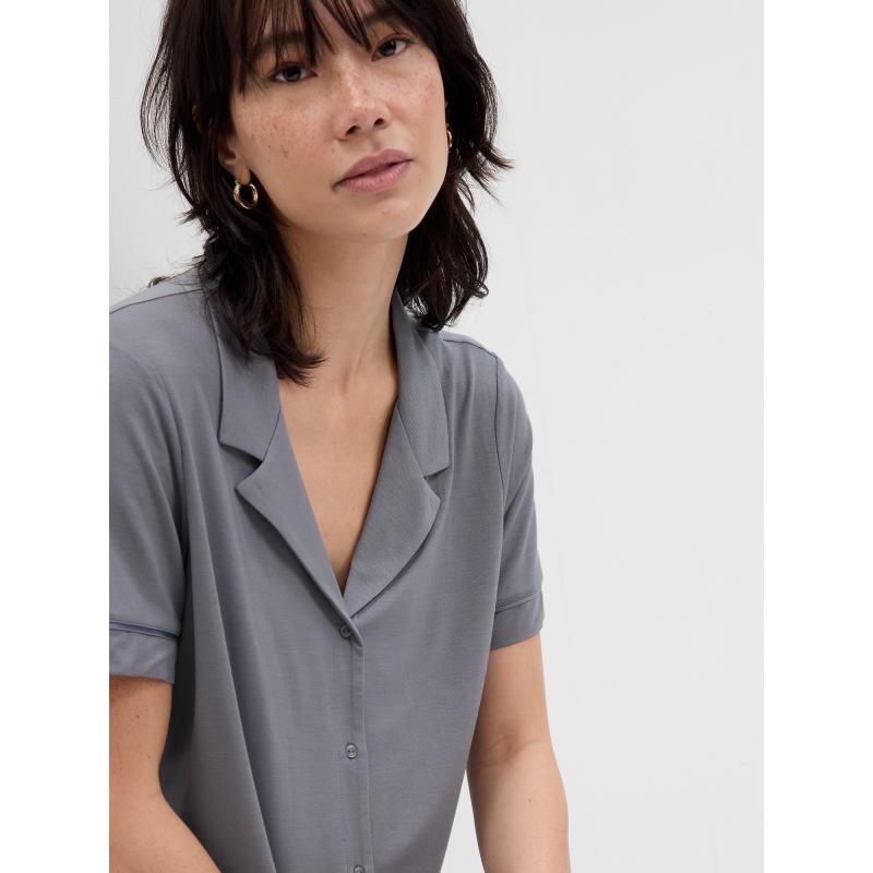 Dámská pyžamová košile.Klopy a zapínání na knoflíky.Krátké rukávy a rovný střih.Příjemný materiál modal a elastan. 89 % modal, 11 % elastan