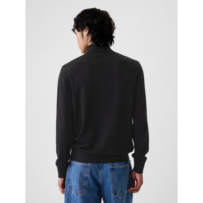 Vyroben z jemné Merino vlny, která je měkká na dotek a poskytuje teplo a pohodlí.Vysoký stojáček a dlouhé rukávy.Svetr je certifikován standardem Responsible Wool Standard – vlna pochází z etických a udržitelných zdrojů.Klasický, rovný střih.Modelové: velikost M, výška 185–188 cm, obvod pasu 79 cm, vnitřní délka nohavic 81–84 cm. 100 % vlna