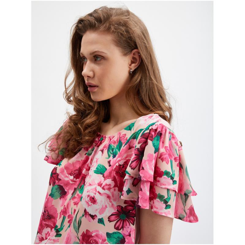Barva: růžováStřih: regular fitDélka rukávu: krátkýVýstřih: kulatýVzor: květinovýMateriál: 100 % polyester, zadní díl - 96 % viskóza Livaeco™, 4 % elastanKód produktu: 107049-98